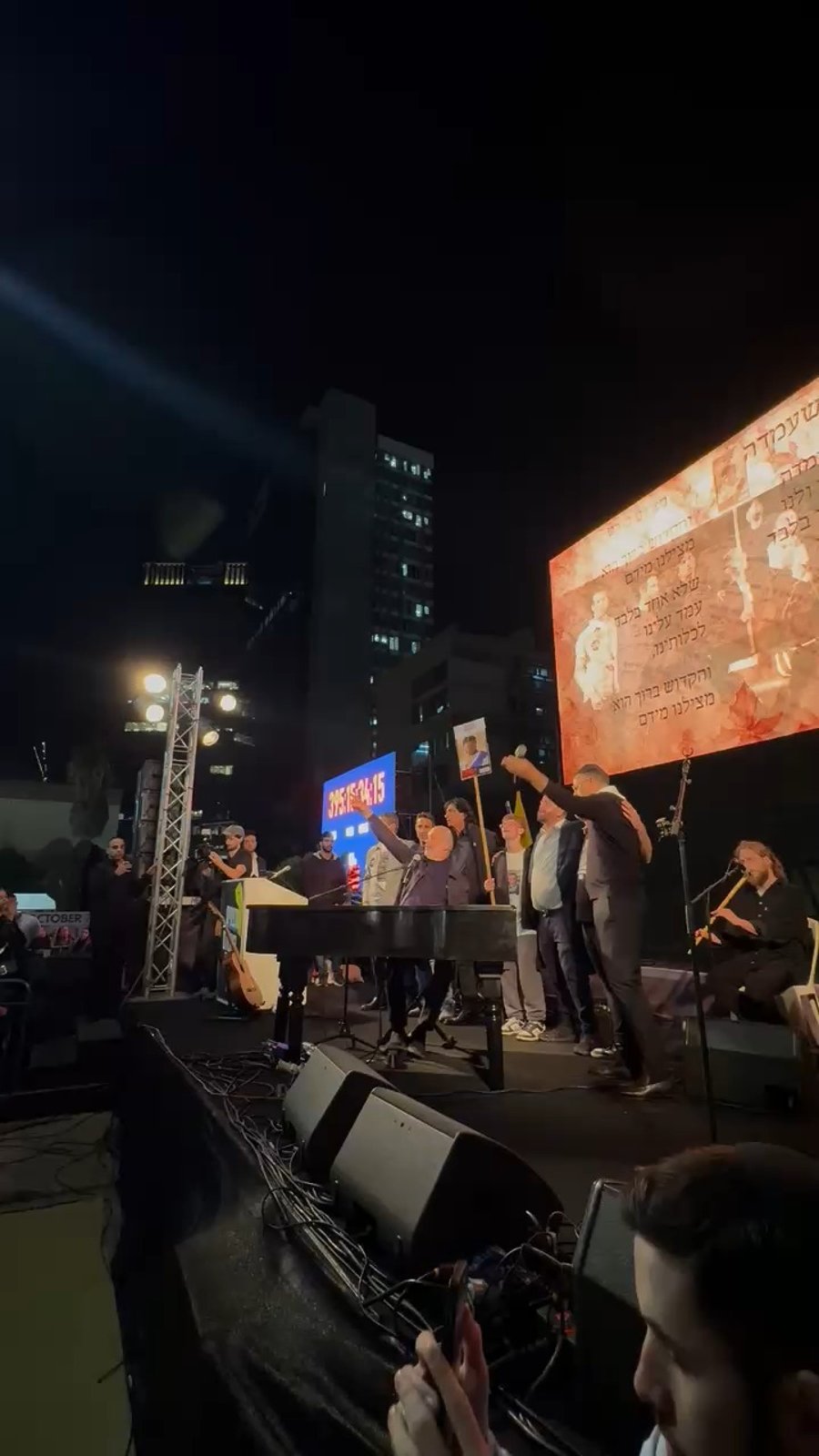 הזמרים יעקב שוואקי ויונתן רזאל בדואט לשיר: "והקדוש ברוך הוא מצילנו מידם", בשירה מרגשת יחד עם איש החסד מאיר בלוך ב'כיכר החטופים' בתל אביב.