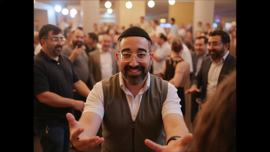 המוזיקאים אברימי לונגר ואושי צייגר וחברי מקהלת 'נשמה', מקפיצים בשירה בשמחת השבע ברכות לבנו של האסטרטג יום טוב ביכלר, בהשתתפות רבנים ואישי ציבור.