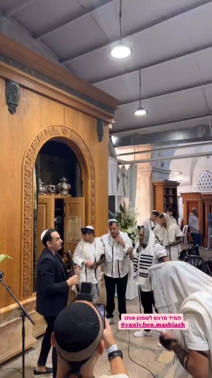הזמר יניב בן משיח בשירת: "שמע בני", בעלייה לתורה לבנו של המפיק ליאור זוהרי, במערת המכפלה שבחברון.