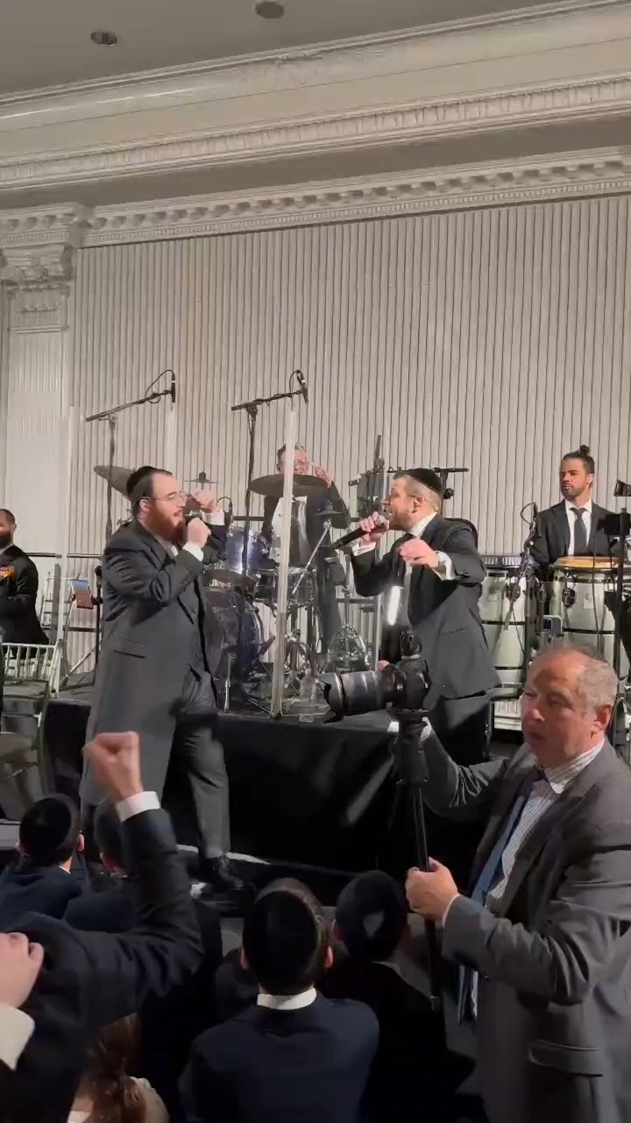 הזמר מוטי שטיינמץ וחברי מקהלת 'מלכות', בשירה מרגשת: "שערי שמיים פתח", בחופת בן הגאון הרב מנחם מנדל פומרנץ ראש בית מדרש 'עוז והדר'.