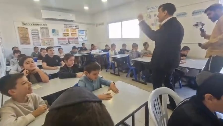 המוזיקאי יואלי דיקמן בצילומים לקליפ החדש, בתלמוד תורה בירושלים.