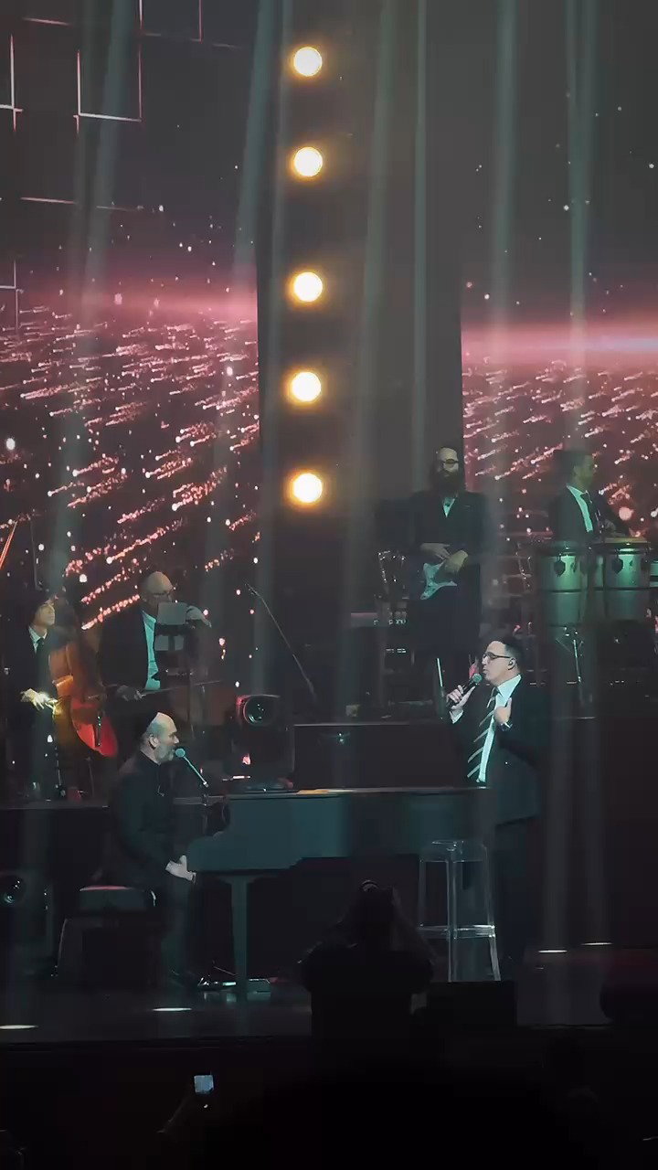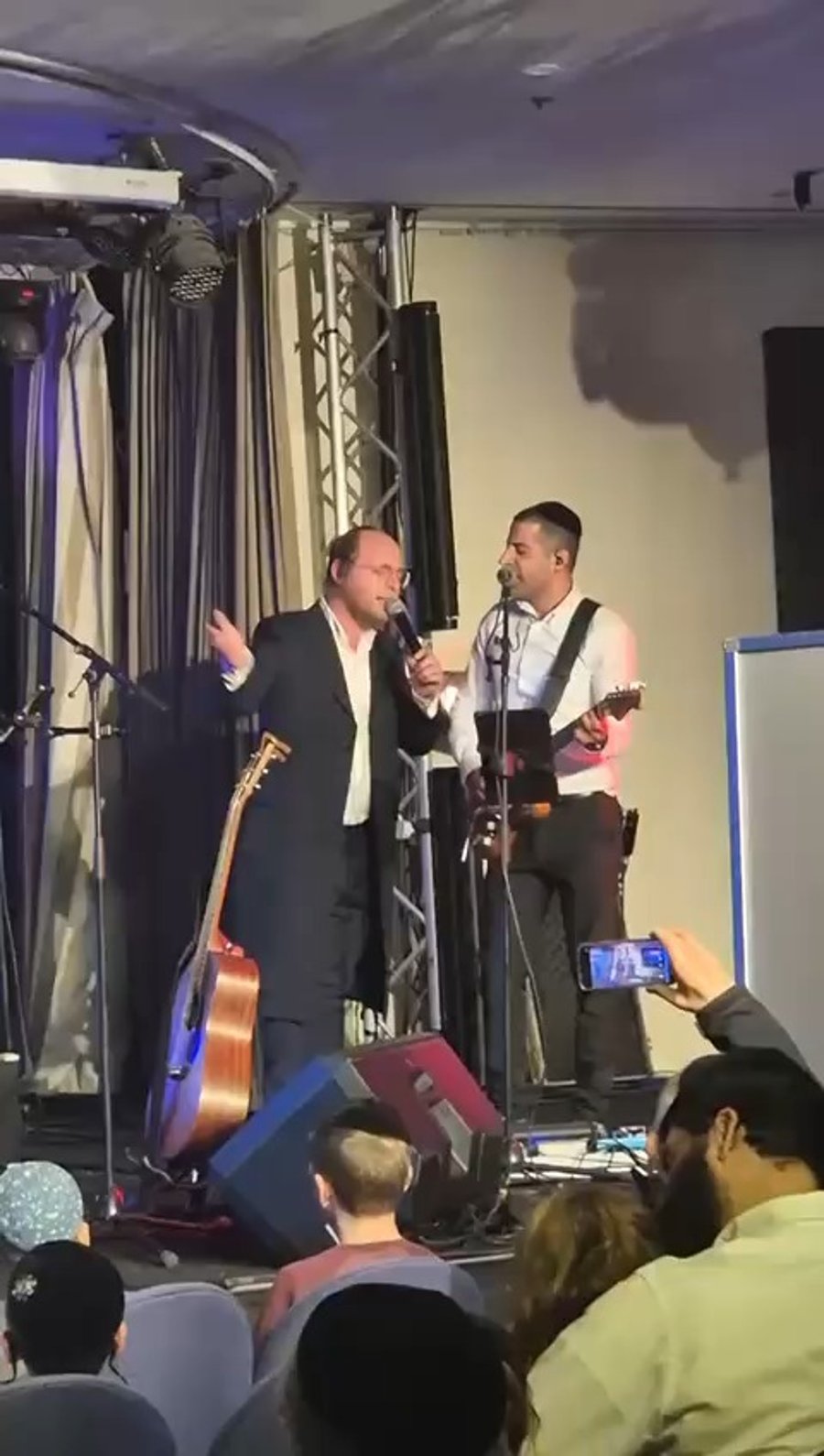המוזיקאים מוטי וייס ויהודה גלילי ותזמורת 'המנגנים', בשירת: "אחינו כל בית ישראל", בנופש מאורגן לחרדים באילת.