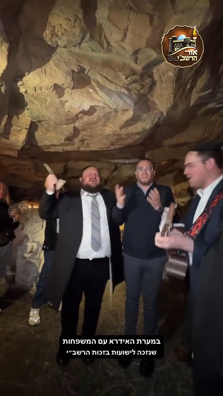 המוזיקאים שוקי סלומון והרב איצי אקרמן, בשירי רגש במעמד תפילה מרגש עם בני משפחות החטופים שבשבי חמאס, במערת האידרא רבה בסמוך למירון. על היוזמה: 'אור הרשב"י' וארגון 'כיסופים'.