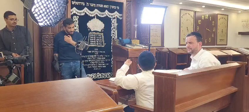 ילד הפלא ישראל גולדרייך המכונה 'ילד הפלא על גלגלים' והזמר והחזן יחיאל ליכטיגר בצילומי קליפ חדש בהפקתו של הבמאי חיים עטון.