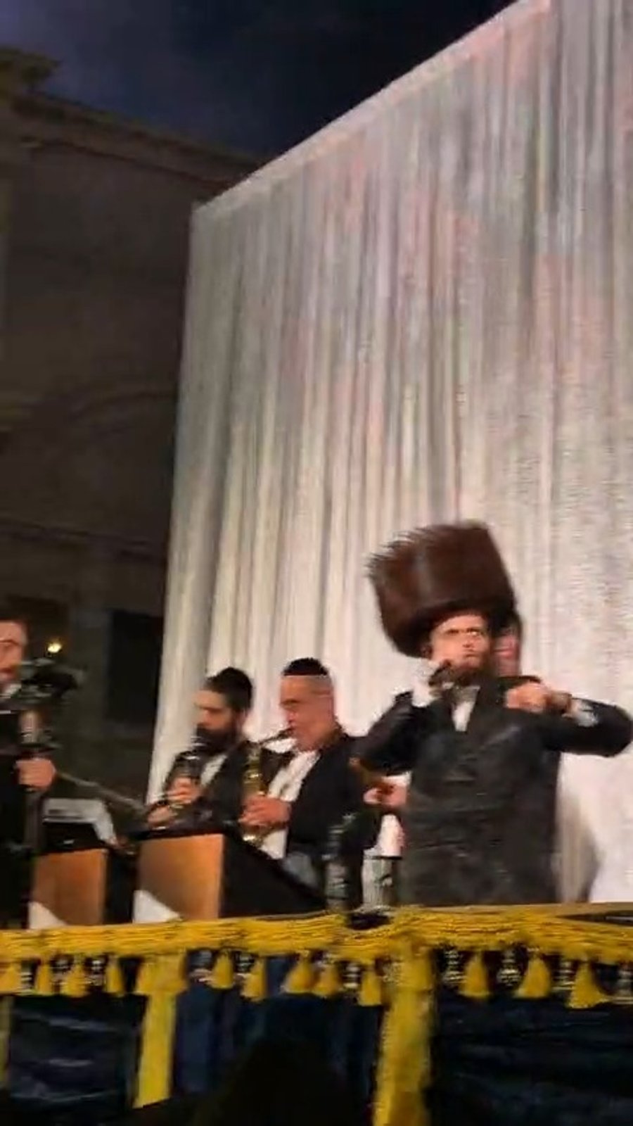 הגאון הרב שלום בער סורוצקין ראש מוסדות 'עטרת שלמה', מקפיץ את תלמידיו בשירת: "עוצו עצה ותופר" בחתונת בנו ב'דיסיטי', יחד עם הזמרים זאנוויל ויינברגר, אהרל'ה סמט, איציק אייזנשטט וחברי מקהלת 'מלכות' בניצוחו של פנחס ביכלר.