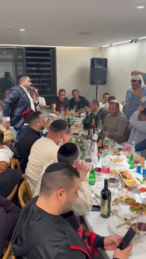 הזמר יונתן רזאל בשירה מרגשת: "אחינו כל בית ישראל", במסיבת פורים שערכה צילי שניידר מארגון 'קשר יהודי' אצל הנגיד ראלף הרצקא בהשתתפות אליה כהן, אגם ברגר וקרינה ארייב ששוחררו משבי חמאס.