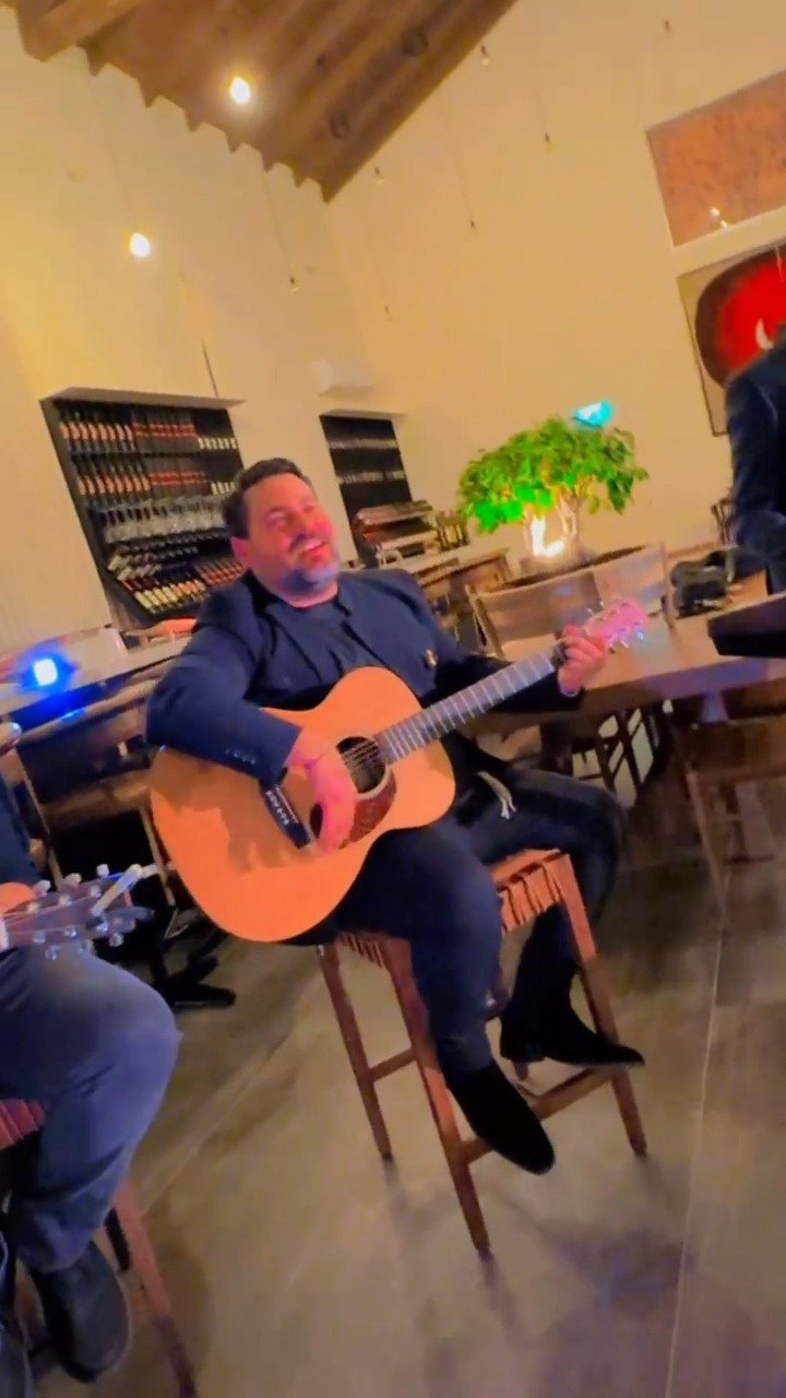הזמר מוטי וייס בשירה וניגון בגיטרה במשתה הפורים בביתו של יועץ התקשורת מני חדד.