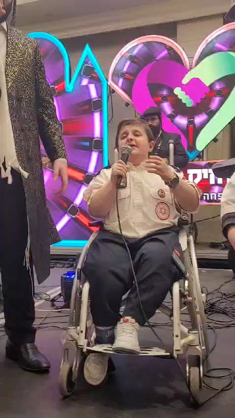 ילד הפלא ישראל גולדרייך המכונה 'ילד הפלא על גלגלים' שעבר הליך רפואי בהצלחה, מודה להשם יתברך בשירת: "הטוב כי לא כלו רחמיך", יחד עם המוזיקאים יהודה מנהיים, צבי עקשטיין ולייזר הרשקוביץ, במסיבת פורים לילדים יתומים של ארגון 'נחזיק חזק'.