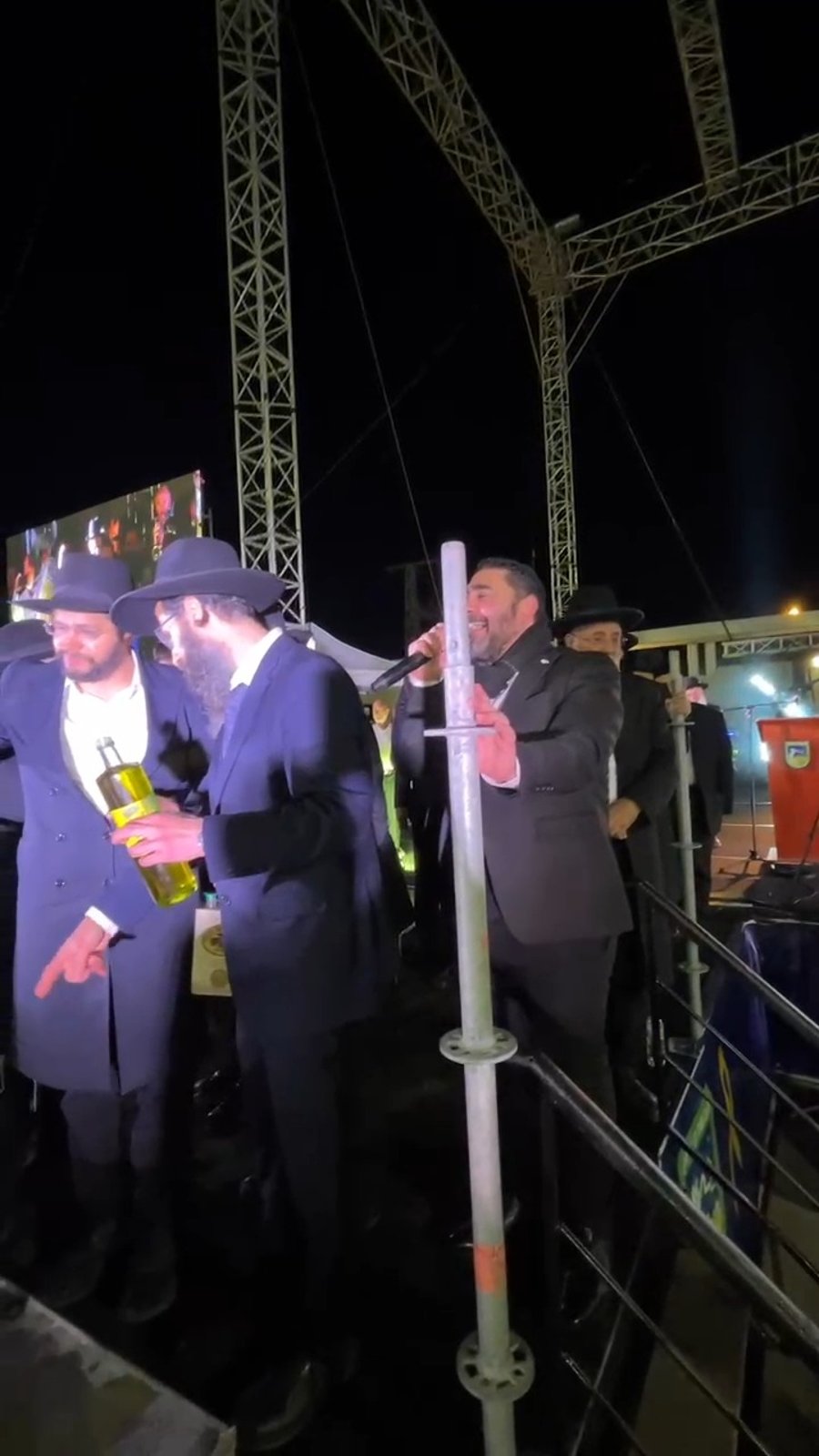 הזמרים חיים ישראל, בנצי שטיין, שמוליק סוכות וחברי מקהלת 'נשמה', מקפיצים בשירת: "לכבוד התנא האלוקי רבי שמעון בר יוחאי", בהדלקה של הראשון לציון ורבה של ירושלים הגאון הרב שלמה משה עמאר.