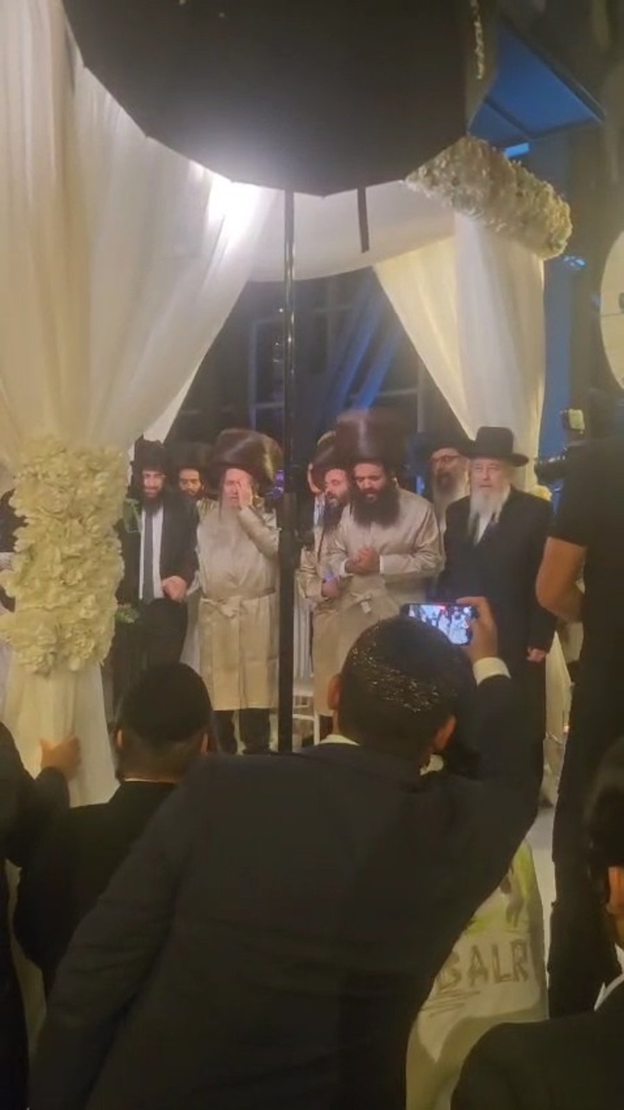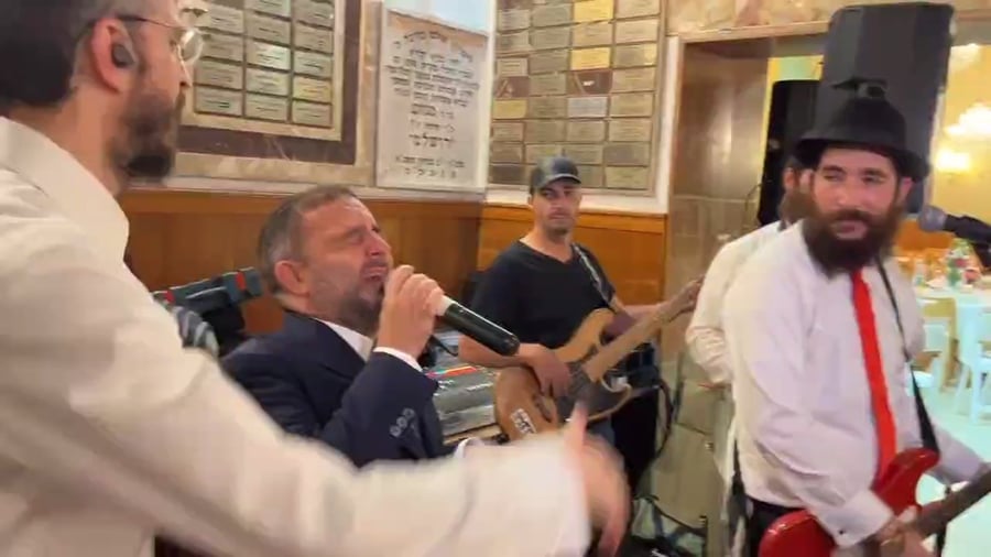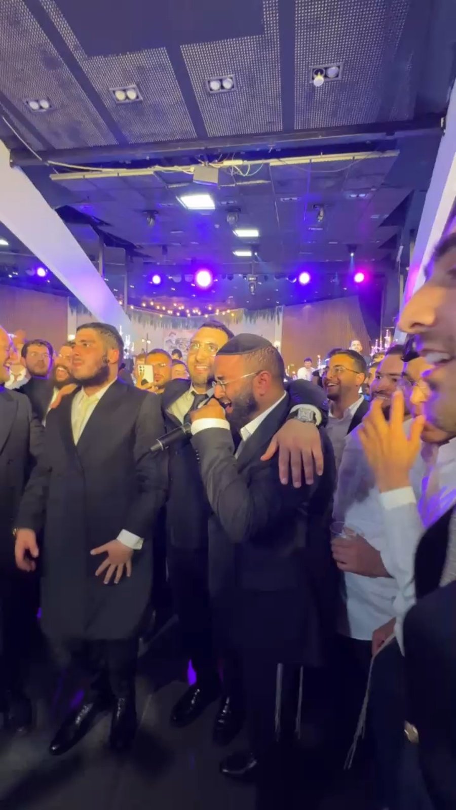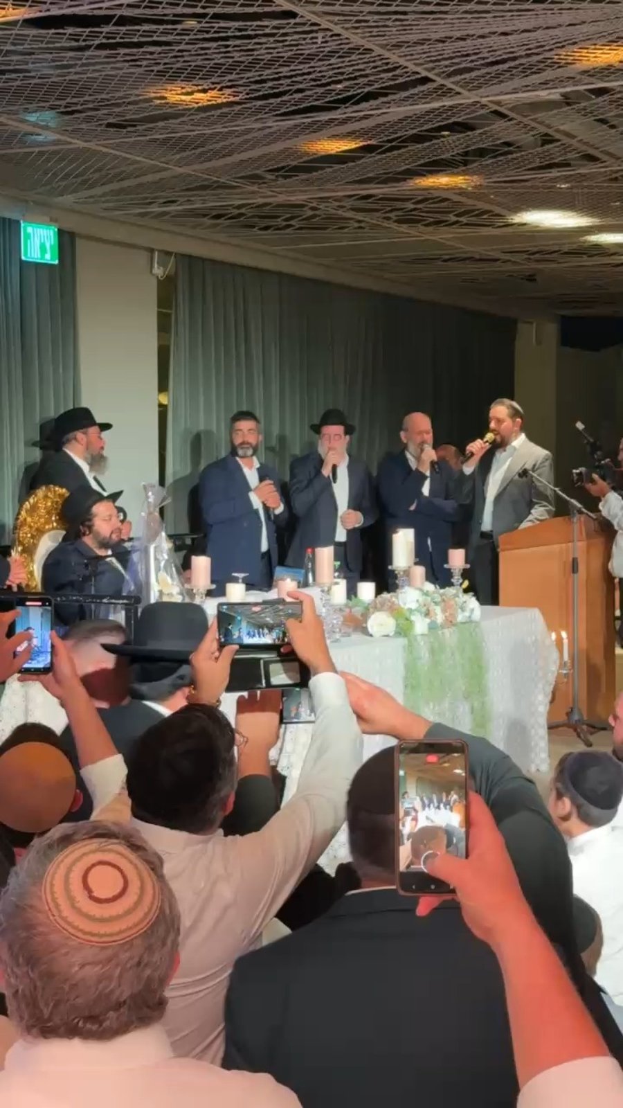 הזמר מוטי שטיינמץ והקלידן דודי פלדמן בשירה מרגשת: "שערי שמיים פתח", בחתונת בת הזקונים של הגאון הרב שלום ארוש ראש מוסדות 'חוט של חסד', באולמי 'וואלי' בכפר סבא.