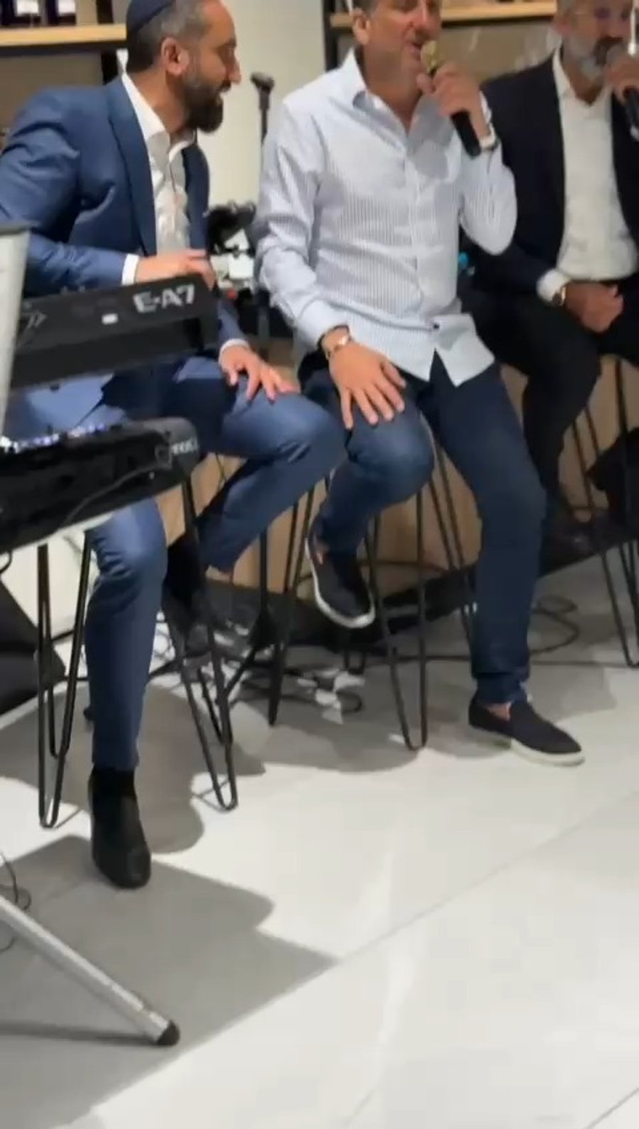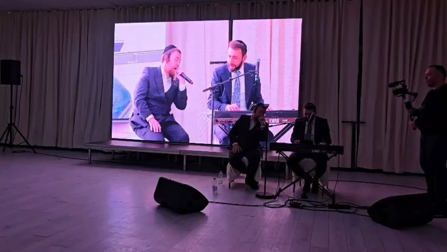 הזמרים מני שטרייכר ורולי דיקמן בשירי רגש ביום הולדת 40 לאחים התאומים קובי פרטיג היועץ החרדי של מפקד מרחב דן במשטרה ניצב משנה אלעד קליין ואחיו איש העסקים שמוליק פרטיג.