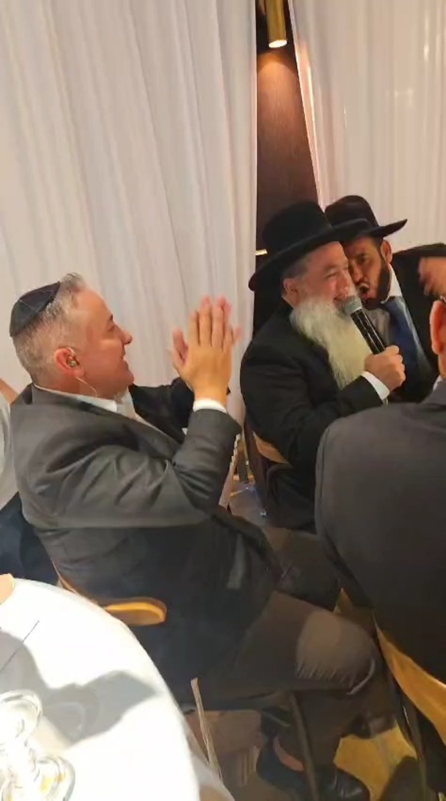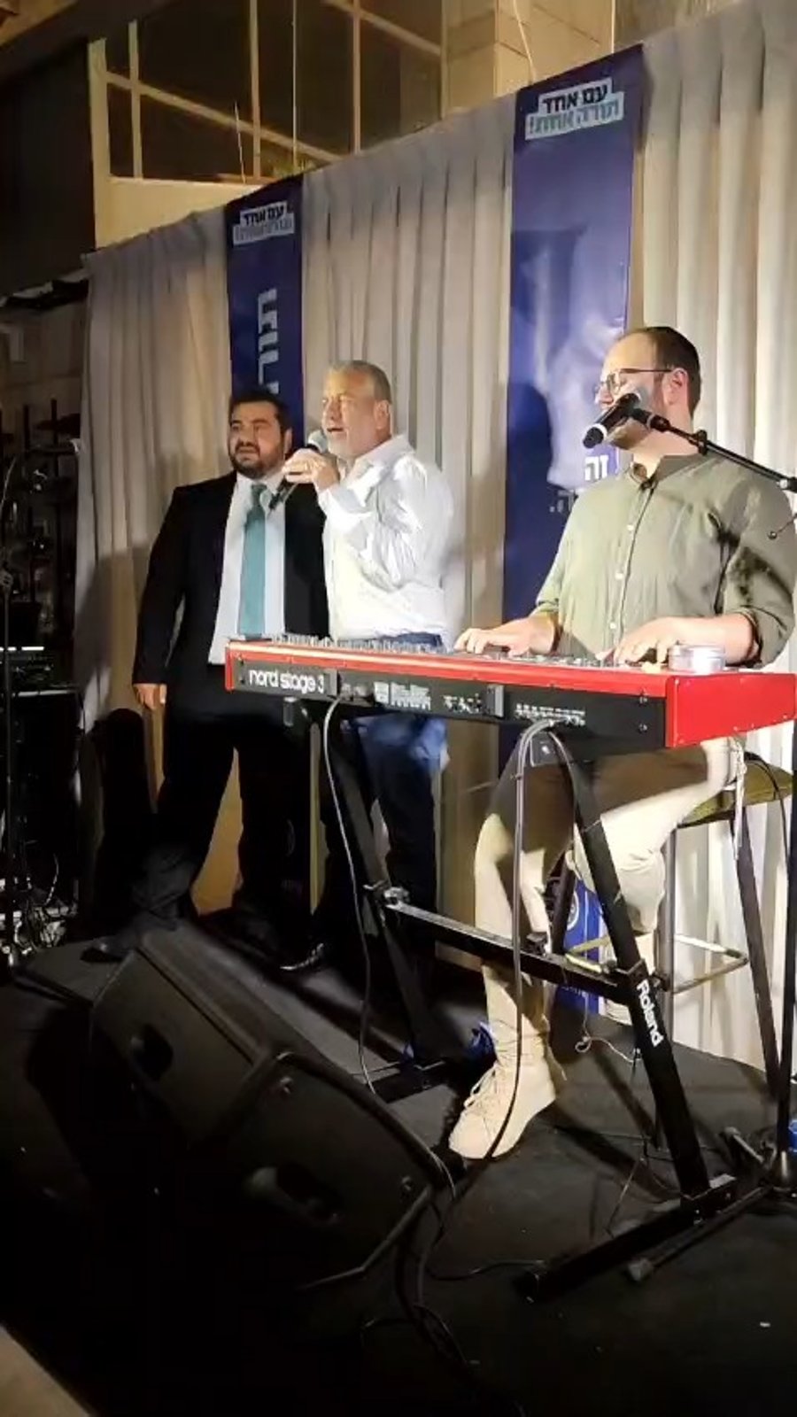 המוזיקאים יואלי דיקמן ושמוליק סוכות מקבלים בשירת: "לאורו נסע ונלך", את הגאון הרב משה הלל הירש ראש ישיבת סלבודקה וחבר מועצת גדולי התורה של 'דגל התורה', באירוע של 'איגוד בני הישיבות' יוצאי צרפת בהיכל התרבות בשכונת רמות בירושלים.
