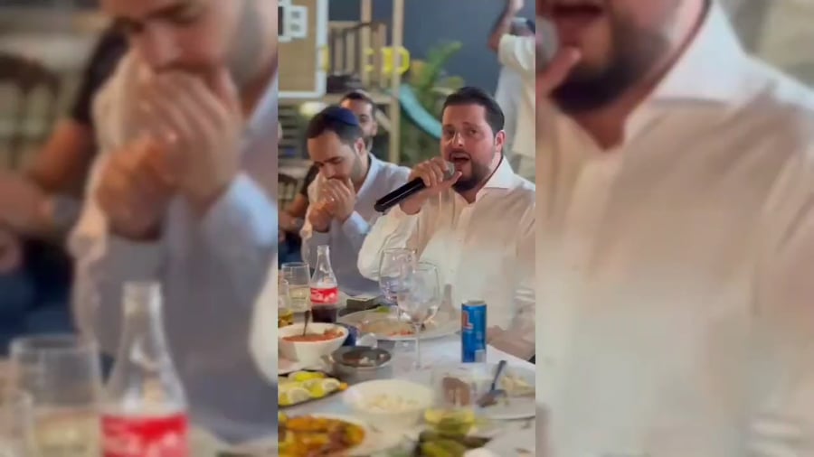 הזמרים והפייטנים משה דוויק, יובל טייב, שמעון סיבוני ונחמן ביטון, בשירה ופיוט ביום הולדת 29 לשף ליאור מיכאל בהשתתפות אנשי עסקים וזמרים.