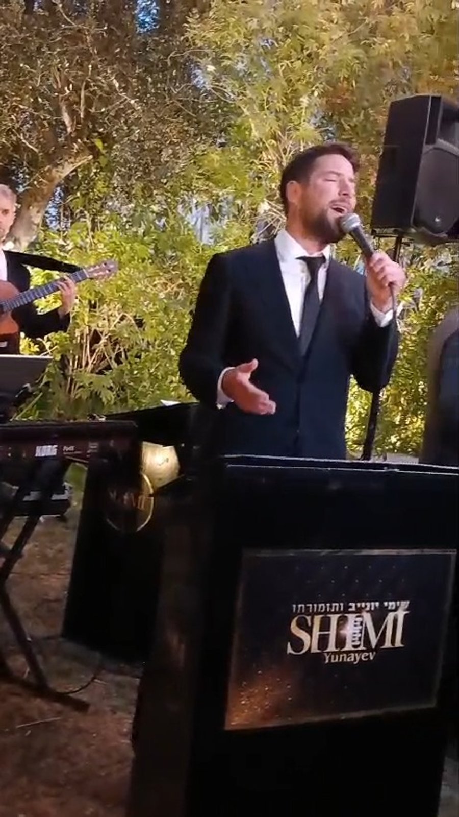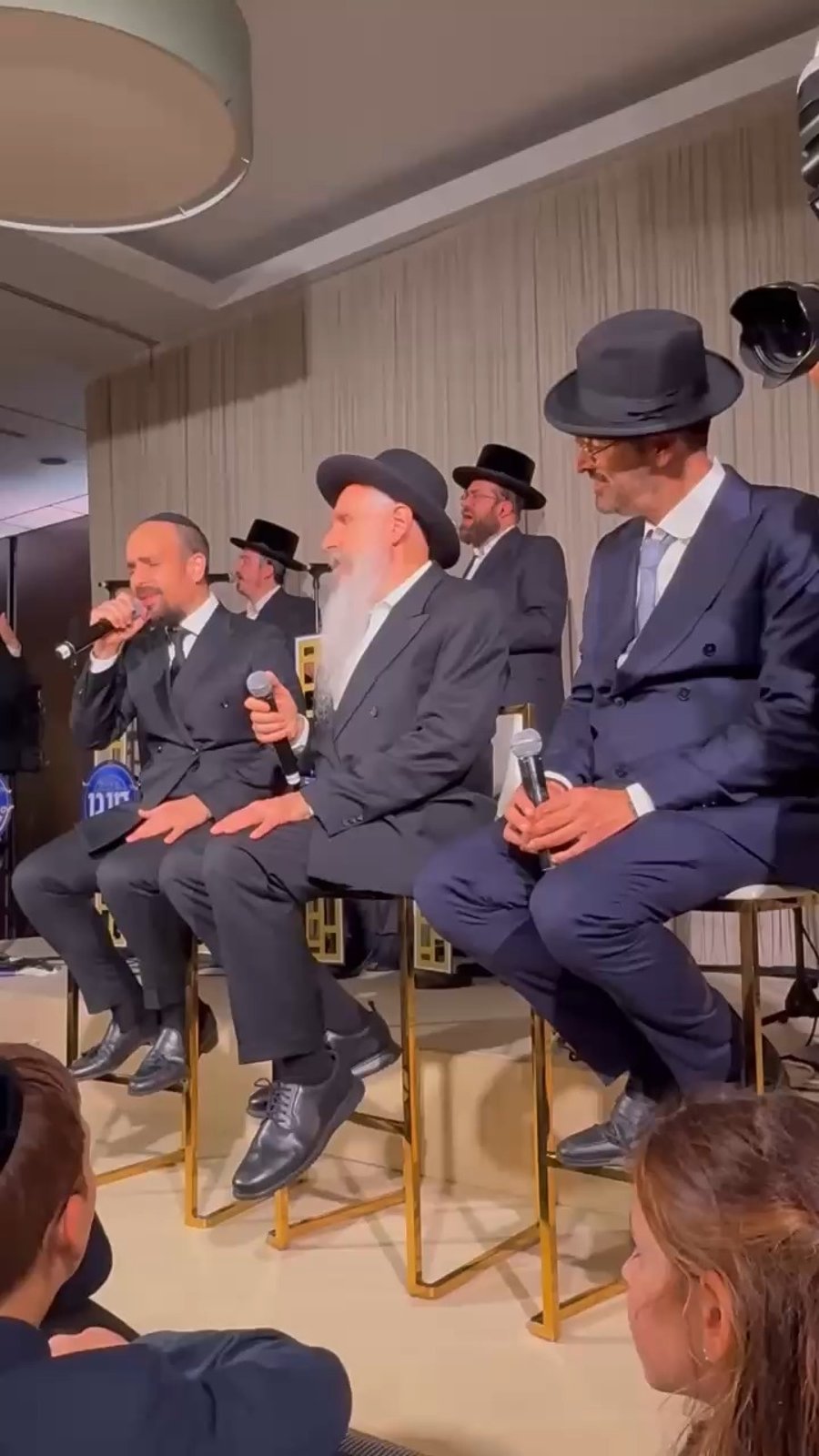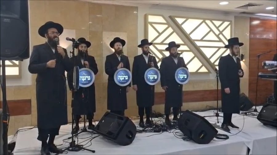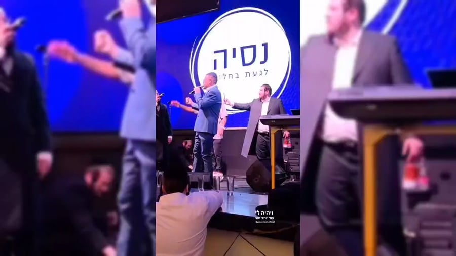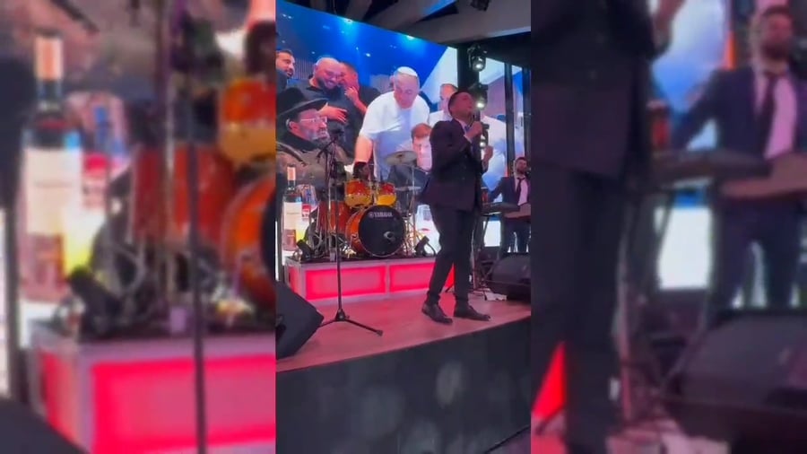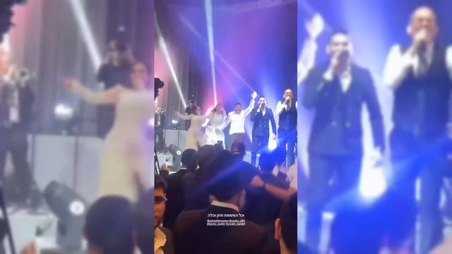 הזמרים שוקי סלומון, יאיר אלייצור ושמוליק קליין, מקפיצים בשירה בחתונת בנו של מיכאל בן אבו, יד ימינו של הגאון הרב שלום ארוש ראש מוסדות 'חוט של חסד', באולמי 'נסיה'.