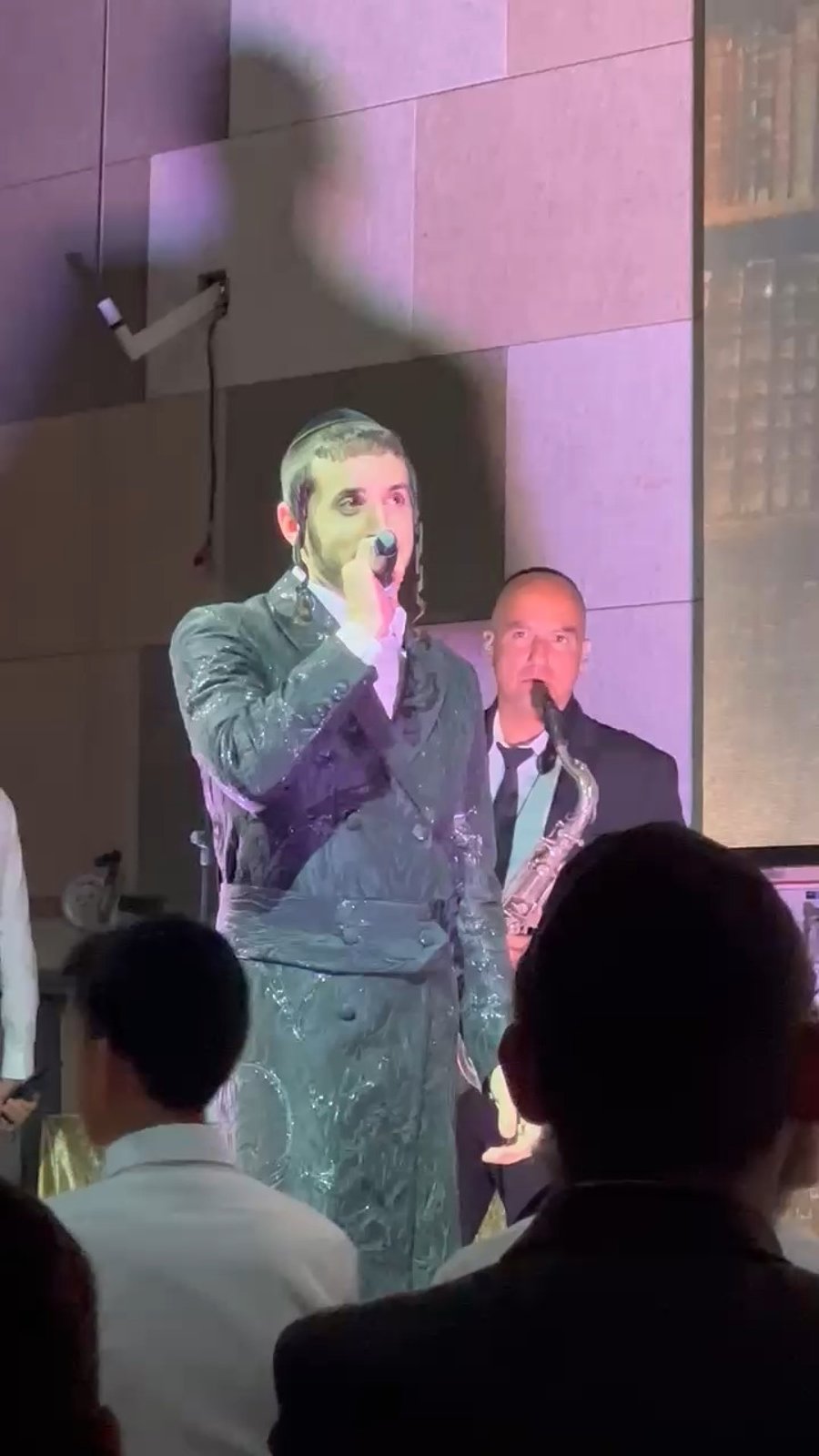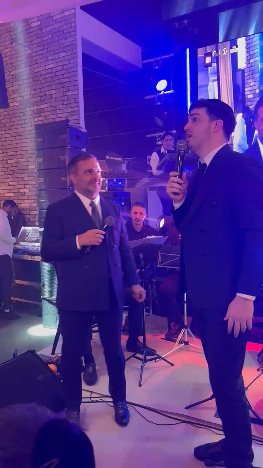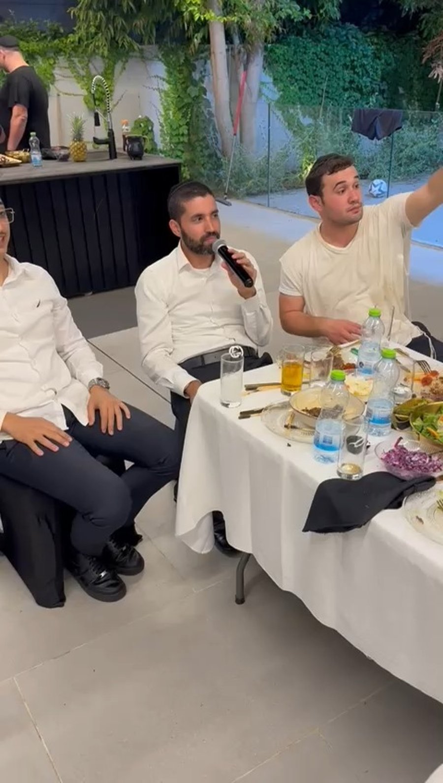 הזמרים שוקי סלומון, יאיר אלייצור ושמוליק קליין, מקפיצים בשירה בחתונת בנו של מיכאל בן אבו, יד ימינו של הגאון הרב שלום ארוש ראש מוסדות 'חוט של חסד', באולמי 'נסיה'.