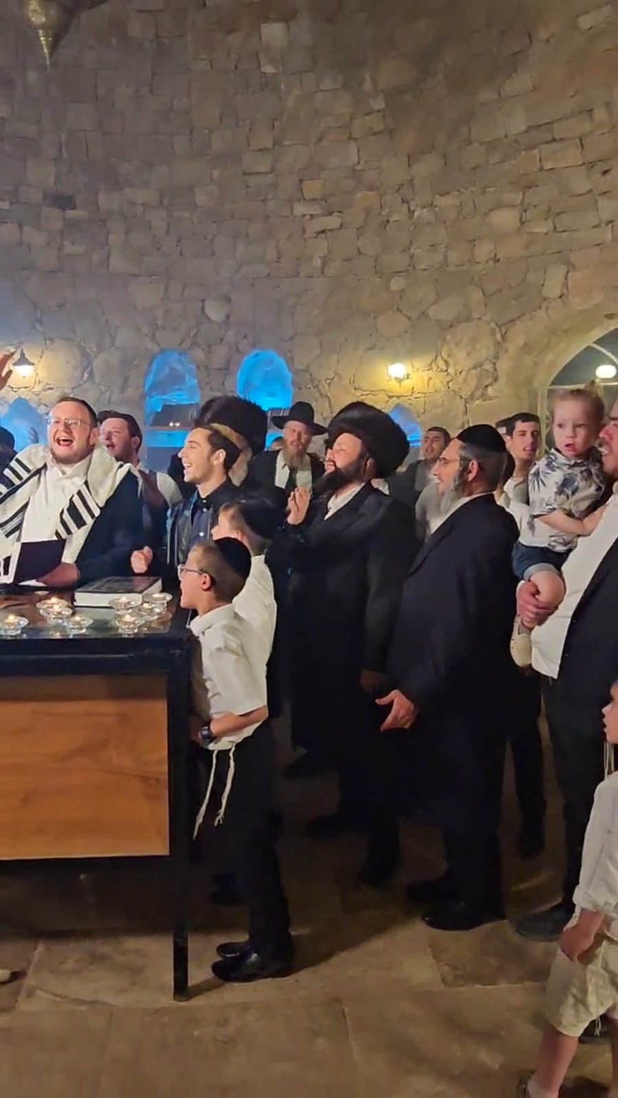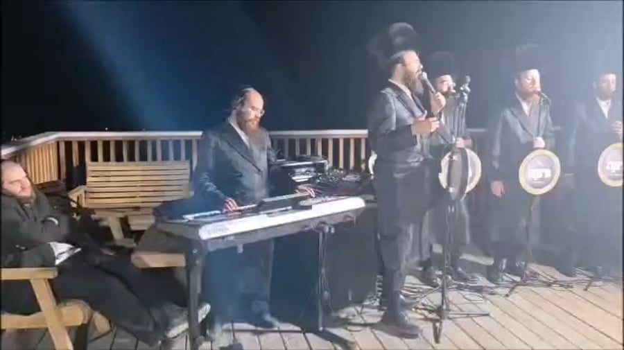 המוזיקאי ישראל אדלר וחברי מקהלת 'נרננה', בשירי רגש בשמחת השבע ברכות לנכדו של האדמו"ר מתולדות אברהם יצחק, במצפה יריחו.
