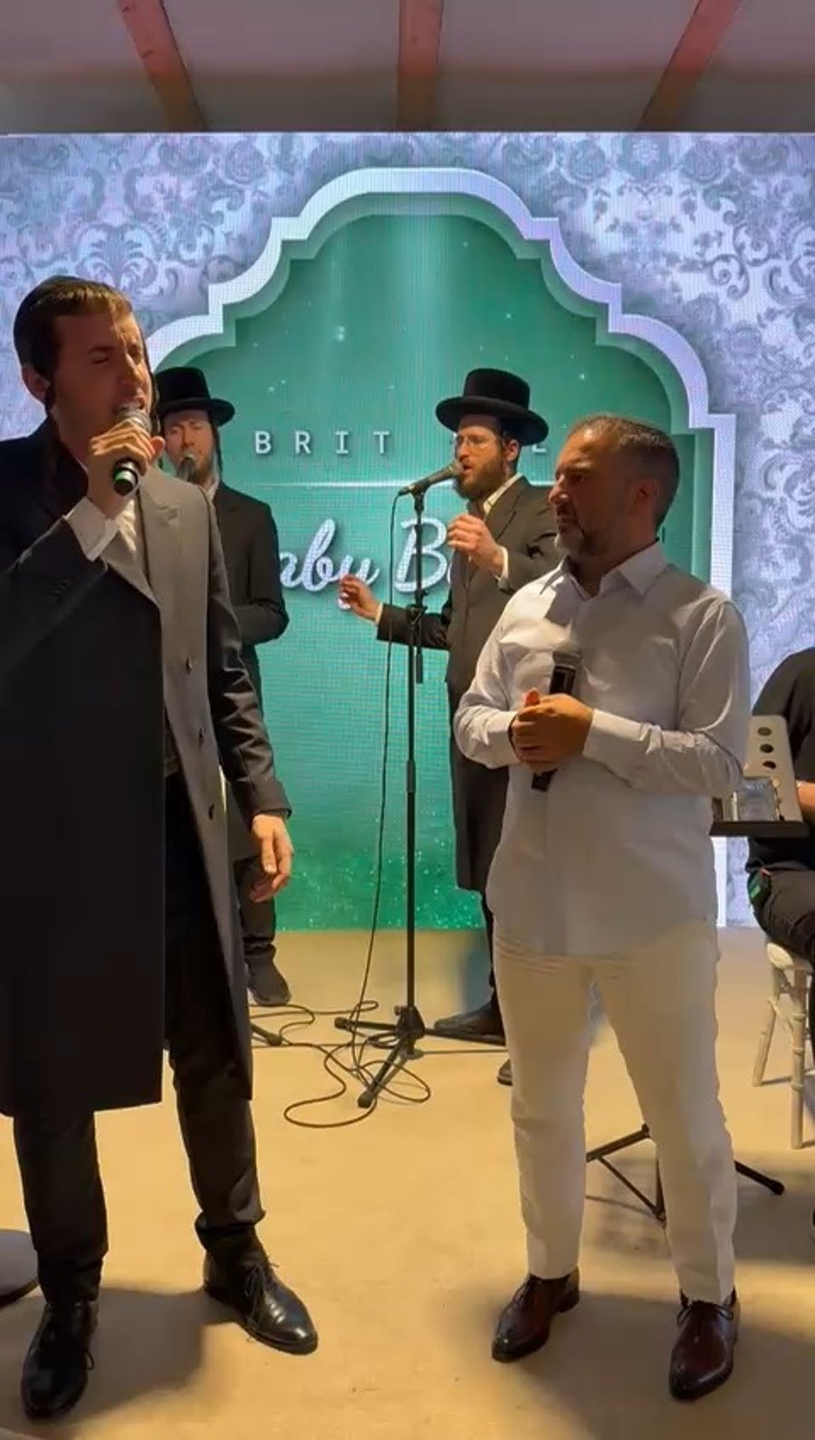 הזמרים משה לוק ושמוליק סוכות וחברי מקהלת 'נשמה', בביצוע מיוחד לשיר: "הנני רופא לך" של הזמר מרדכי בן דוד, בשמחת הברית לבנו של המפיק יונתן בן טוב ורעייתו דבי בן טוב, באולמי 'דיוויד קסטל - ויסטה' בירושלים, ויקרא שמו בישראל: ליב יצחק.