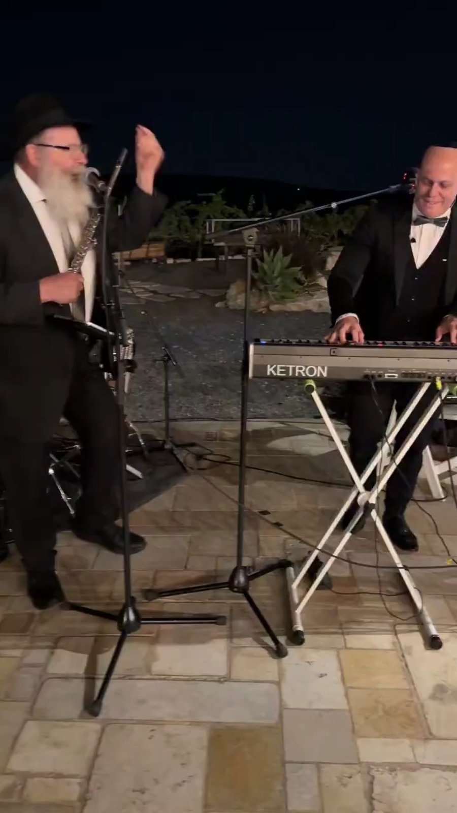 הזמר צביקי מילר ותזמורתו בשירה חסידית, בחתונת אחיו - בנו של יעקב מילר מבכירי 'איחוד הצלה' באלעד.