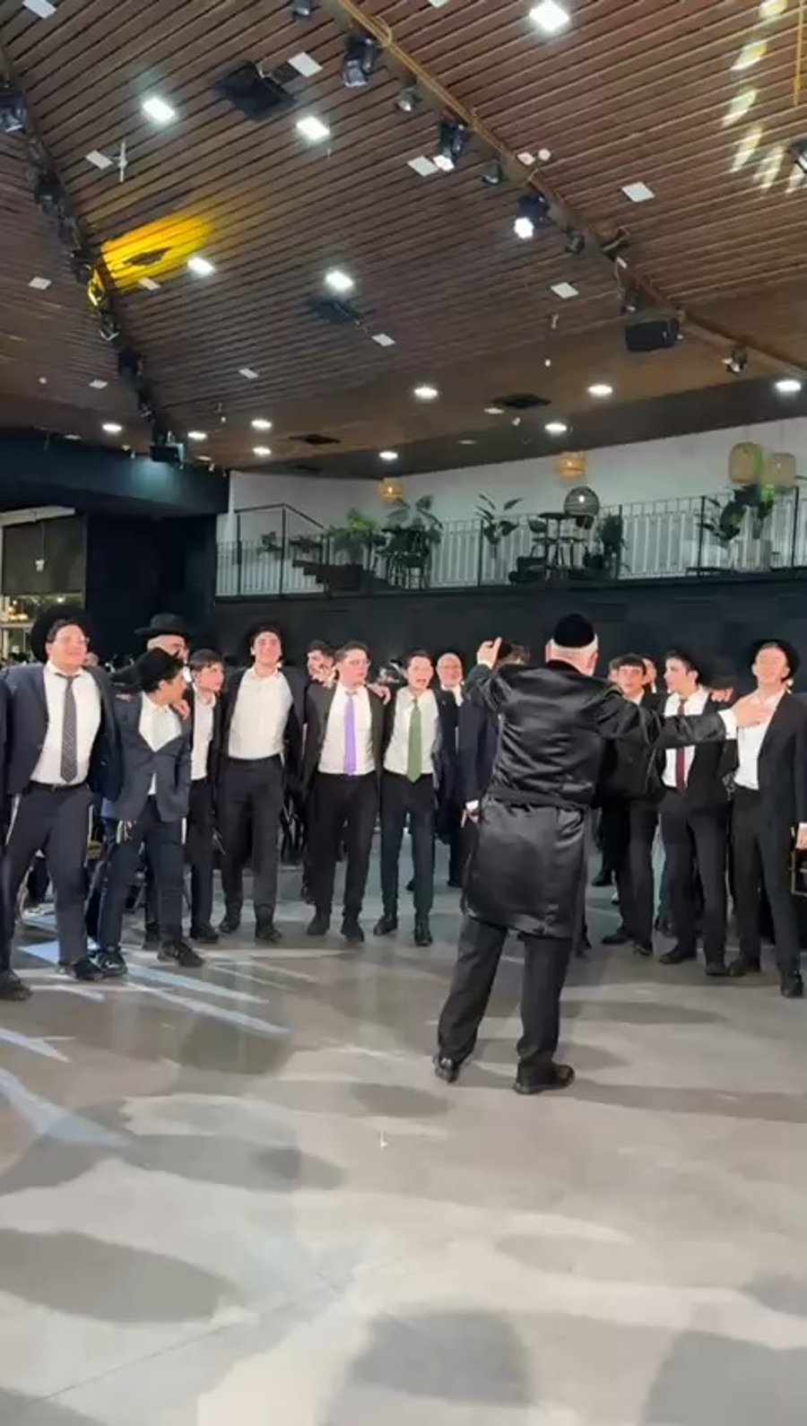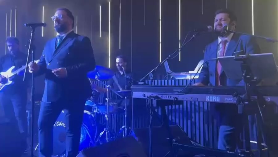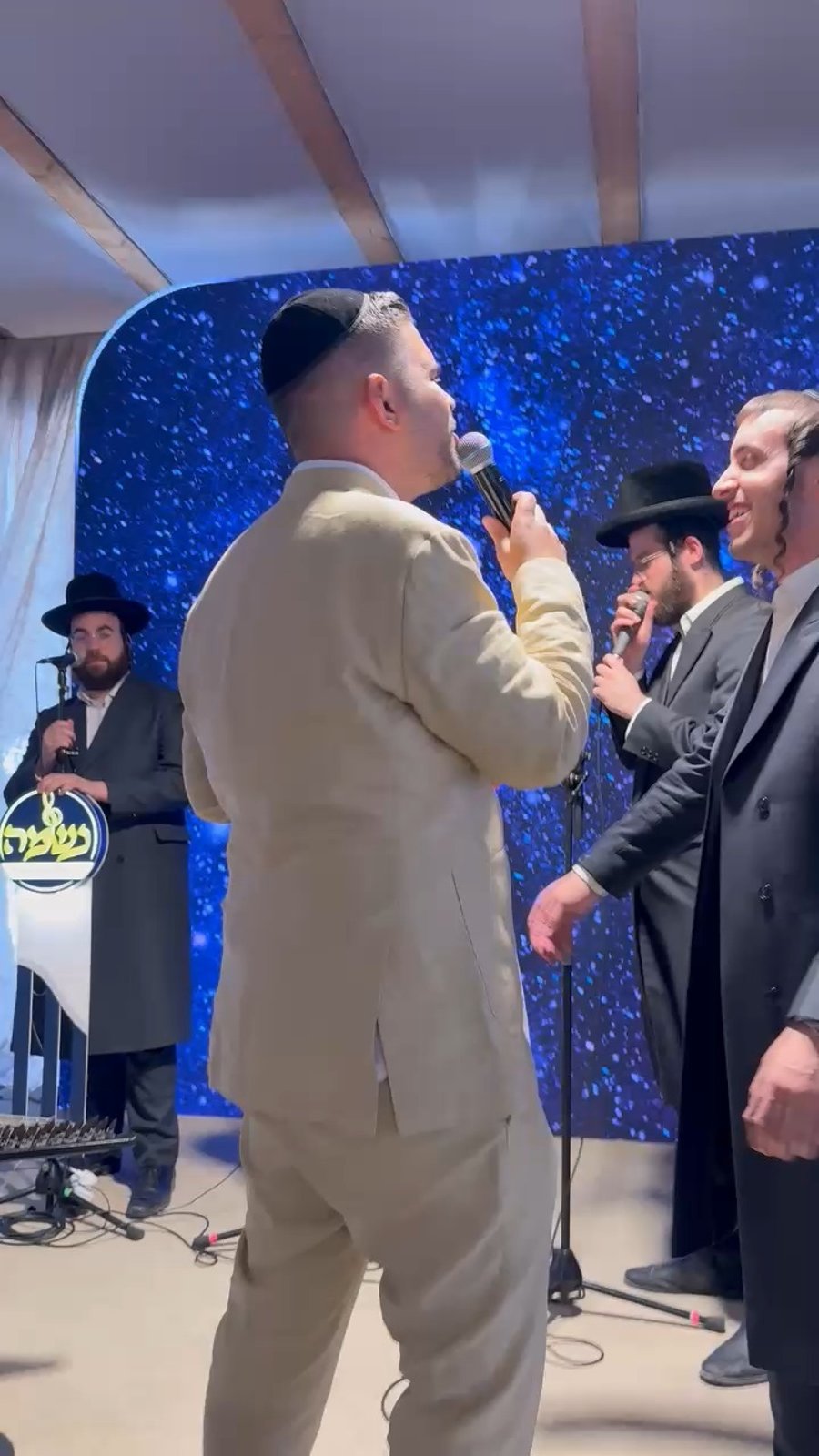 הזמר מוטי ויזל וחברי מקהלת 'נשמה', בשירה מרגשת בחופת בנו של הרב משולם ברנדווין ראש ישיבת 'חדוות התורה' עם בתו של איש העסקים אלעזר שקדי, באולמי 'אמרלד' בבית שמש.