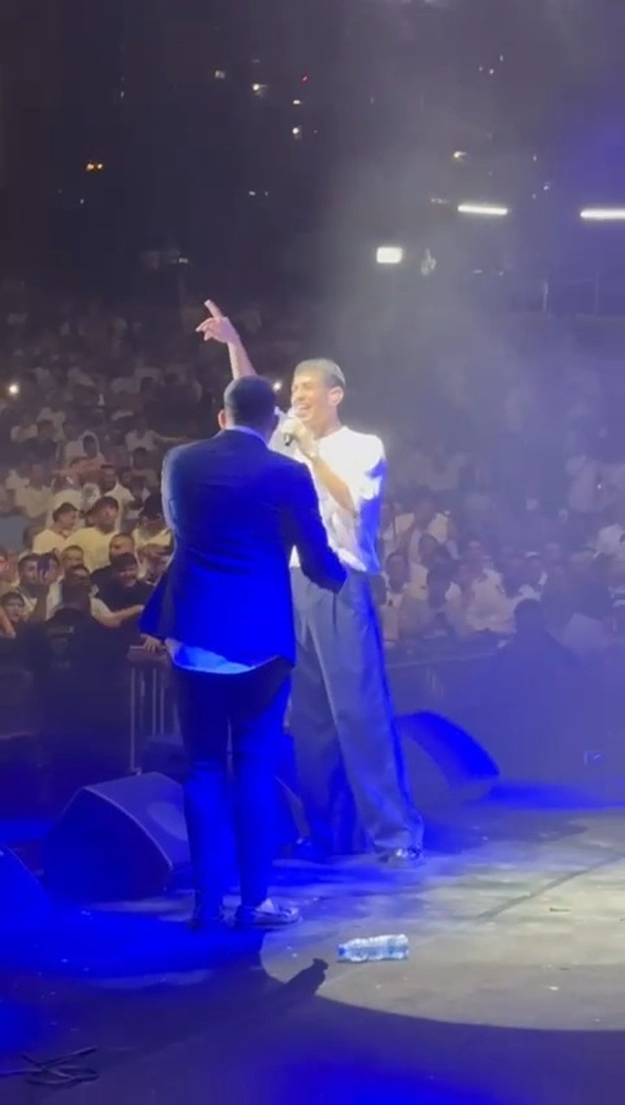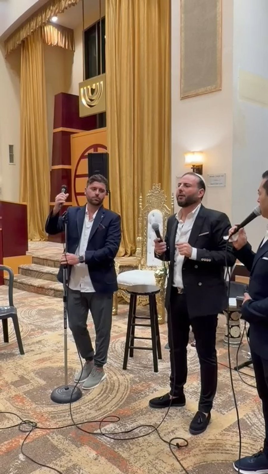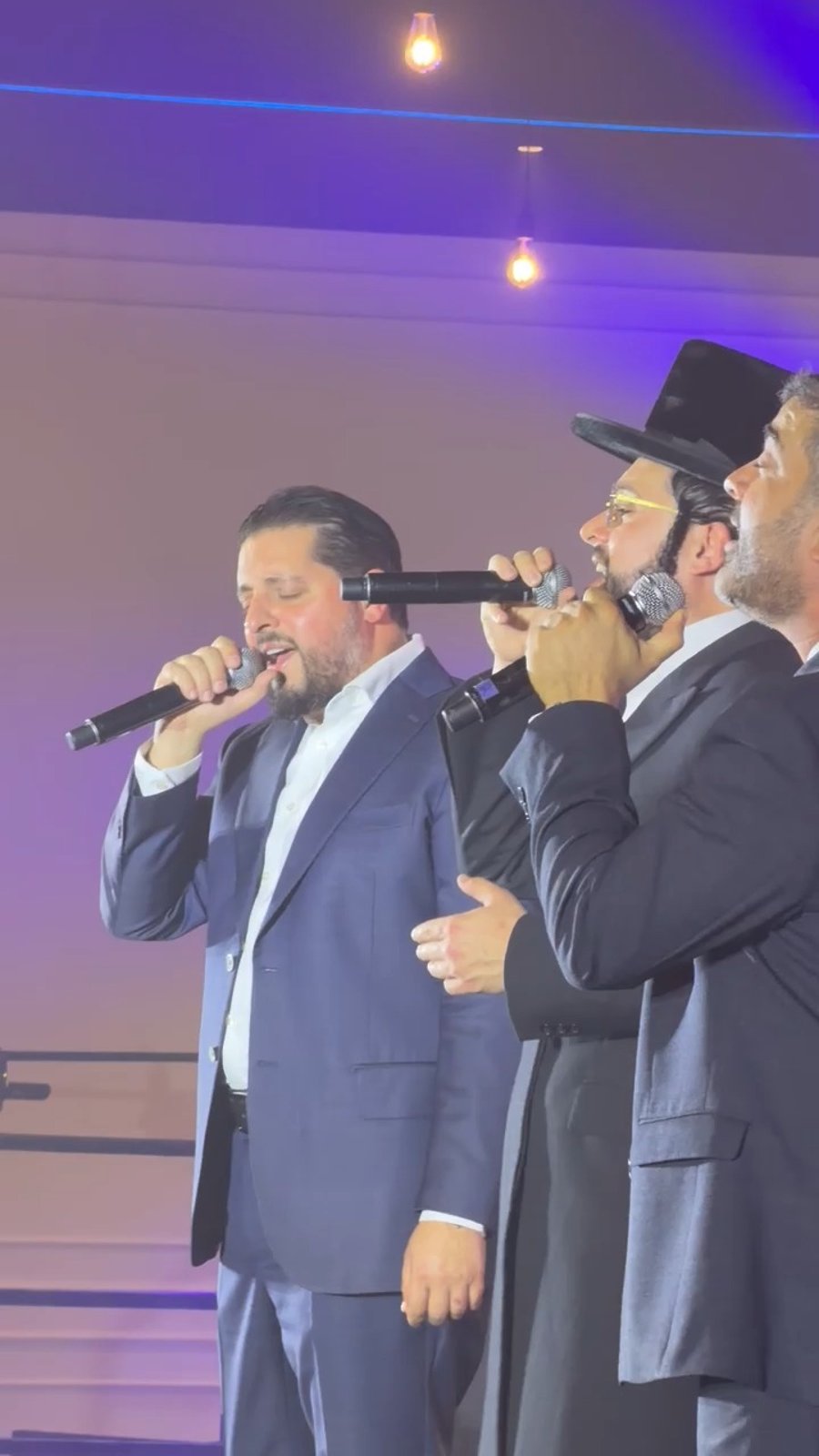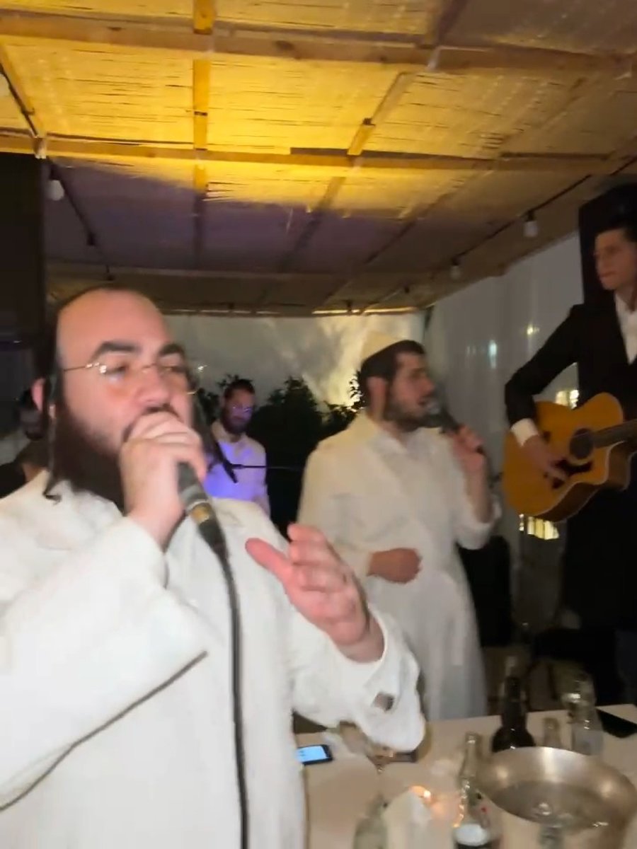 הזמרים משה דוד וייסמנדל, יענקי קופילוביץ וחברי מקהלת 'נשמה' יחד עם איש החסד שי גראוכר, בשירי רגש במוצאי יום כיפור במלון 'מצודת דוד' בירושלים, בהשתתפות נגידים.