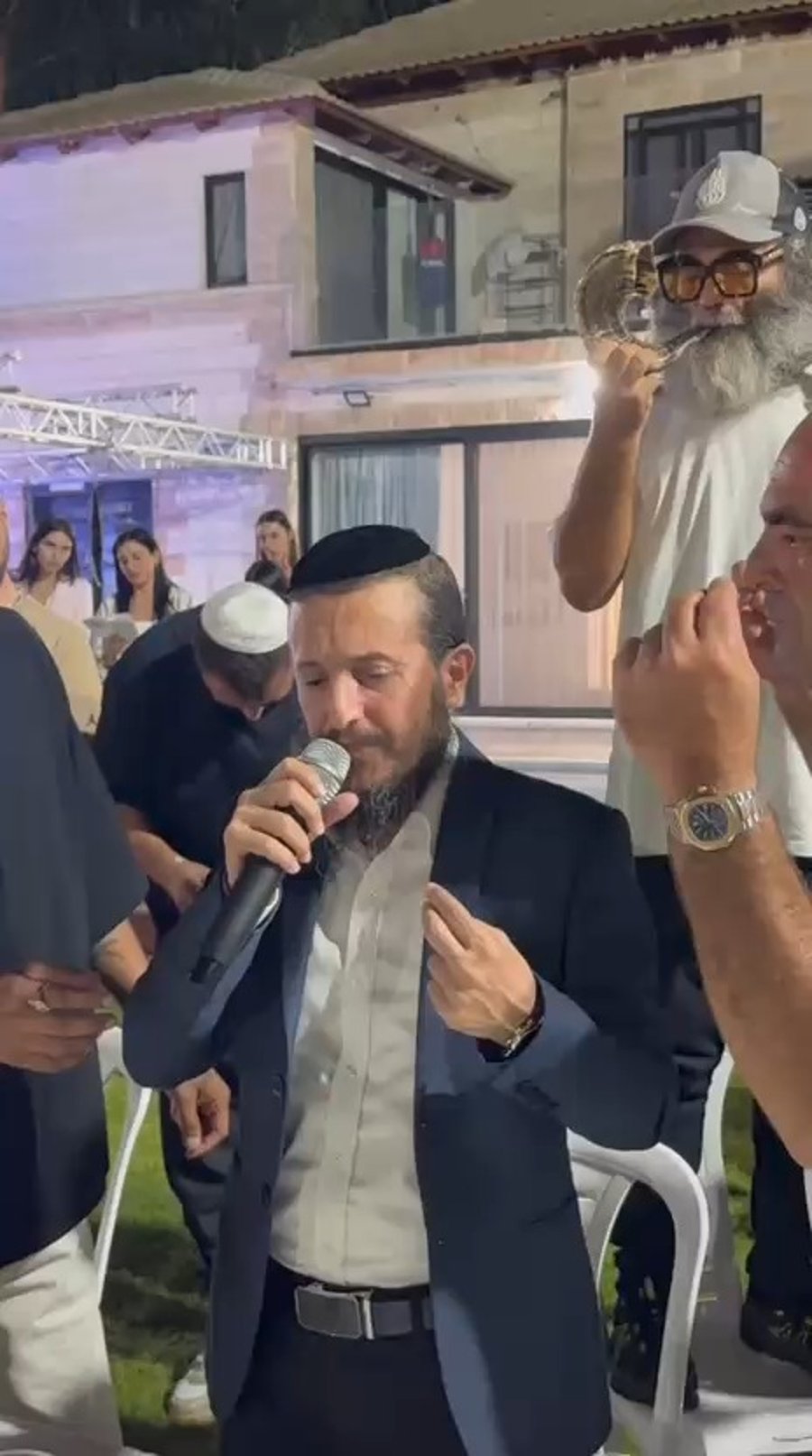 הפייטן ארז יחיאל מפייט בסליחות יחד עם הזמר איתי לוי, בערב סליחות באחוזתו של איש העסקים אלון אלגלי באחיסמך.