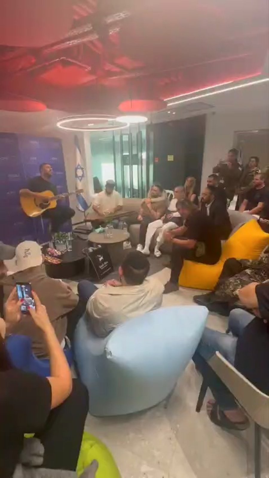 הזמר ישי ריבו משמח בשירה את שורדי השבי ששוחררו משבי חמאס בעזה, במחלקת השבים בבית החולים 'תל השומר', יחד עם הרב בנימין בן חמו יו"ר 'תורה בוקס'.