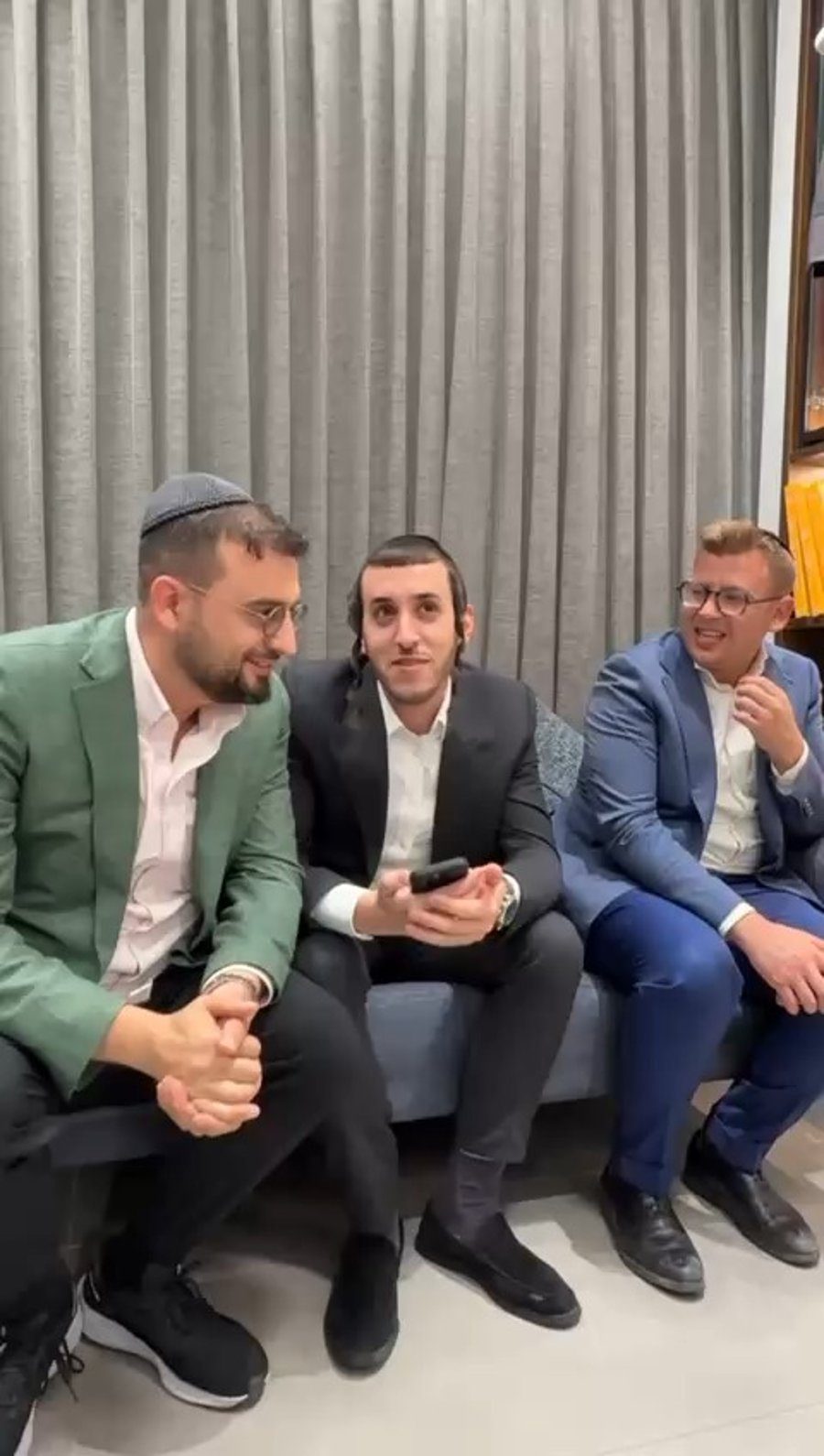 הראפר יאיר אלייצור משמח בשירי אמונה את שורד השבי בר קופרשטיין ששוחרר משבי חמאס בעזה, יחד עם הרב שלמה רענן יו"ר 'איילת השחר'.
