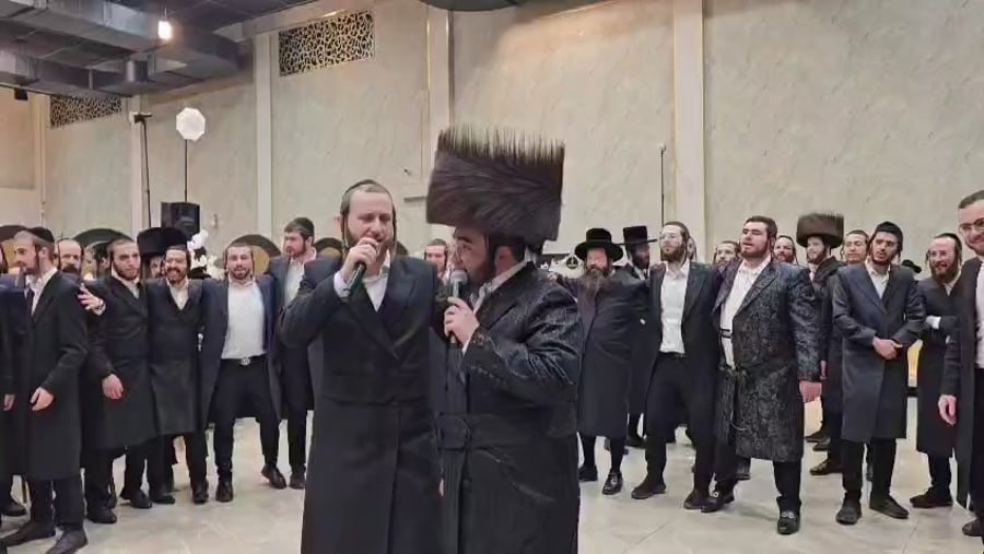 הזמרים זאנוויל ויינברגר, ישי לפידות, שוקי סלומון, 'נמואל', חברי מקהלת 'מלכות' ואהרל'ה נחשוני ותזמורתו, מקפיצים בשירה בבר מצווה יוקרתית לבנו של איש העסקים יוסי לרר במלון 'וולדורף אסטוריה' בירושלים.