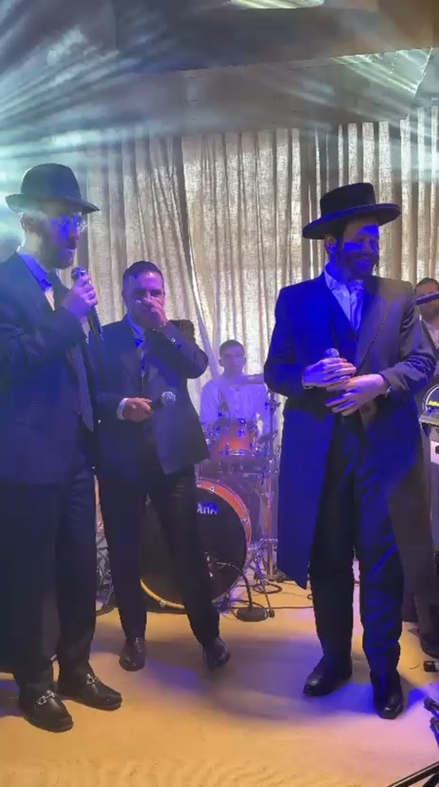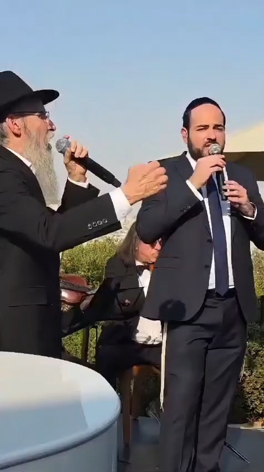 הזמר ארי היל והמוזיקאי אהרל'ה נחשוני ותזמורתו, בשירה מרגשת בחופת בתו של פנחס ארליך מנהל אגף תרבות תורנית בעיריית ירושלים, באולמי 'קונקורד' בבני ברק.