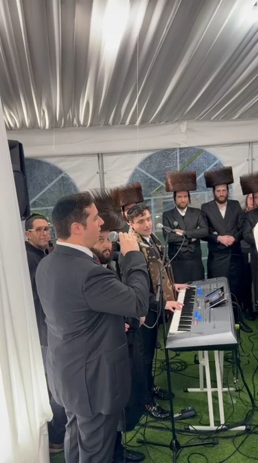 הזמרים בני פרידמן שלומי דסקל ודובי מייזליש, בשירה מרגשת בחתונה יוקרתית לבתו של הנגיד ישראל פרידמן בניו ג'רזי.