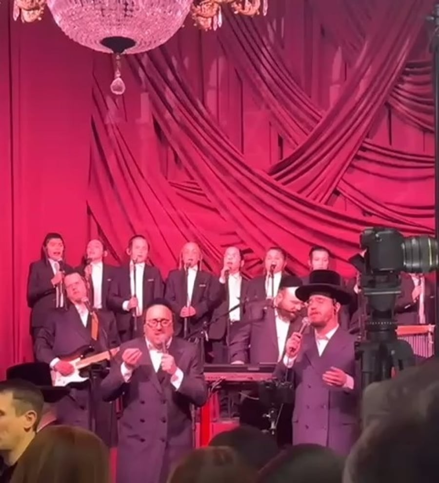 הזמרים בנצי שטיין וליפא שמלצר, בשירה חסידית מרגשת במסיבת חנוכה יוקרתית בניו יורק.