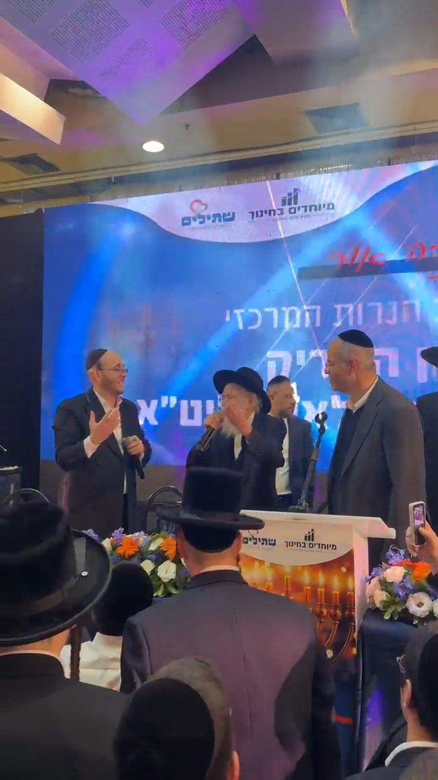 הזמרים פיני איינהורן ואריק דביר, שרים יחד עם המשפיע הגאון הצדיק הרב שמעון גלאי, את הלהיט "טאטאל'ע קום שוין אהיים", במסיבת חנוכה לילדים מיוחדים מ'שתילים' של הרב ישראל רייסנר, באולמי 'הדודאים' בבני ברק.