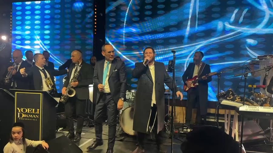הזמר והחזן ניסים סאאל, המוזיקאי יואלי דיקמן ותזמורתו וחברי מקהלת 'נשמה', בביצוע עוצמתי לשיר "הוא יברך את החתן ואת הכלה, בחופת בתו של מפיק הסרטים החרדי שלום אייזנבך, באולמי 'דימול פלטינום' ברמת גן.