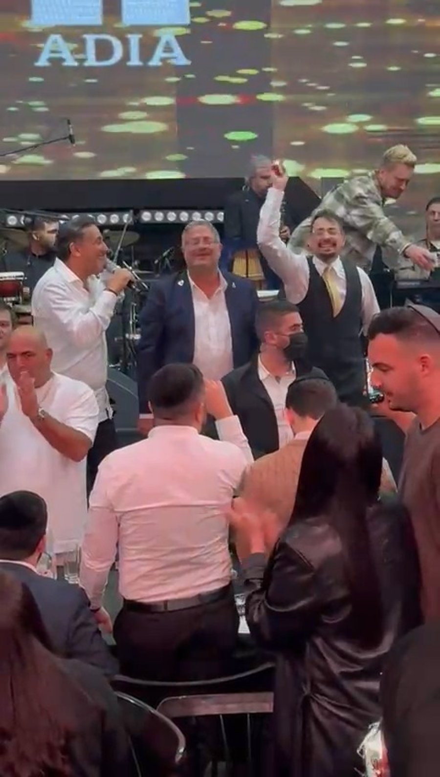 "ואנקמה נקם אחת משתי עיני מפלסטין" • השר לביטחון לאומי איתמר בן גביר והזמר חיים ישראל, בביצוע מיוחד לשיר "זכרני נא", בבריתה לבתו של העיתונאי אריאל עידן מ'ערוץ 14' ורעייתו סיון, באולמי 'עדיה' ביבנה.
