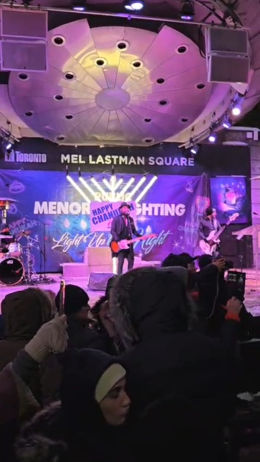 המוזיקאי ברק גרוסברג מקפיץ בשירת "עם ישראל חי" בהדלקת נרות חנוכה בקהילה היהודית בטורונטו שבקנדה.