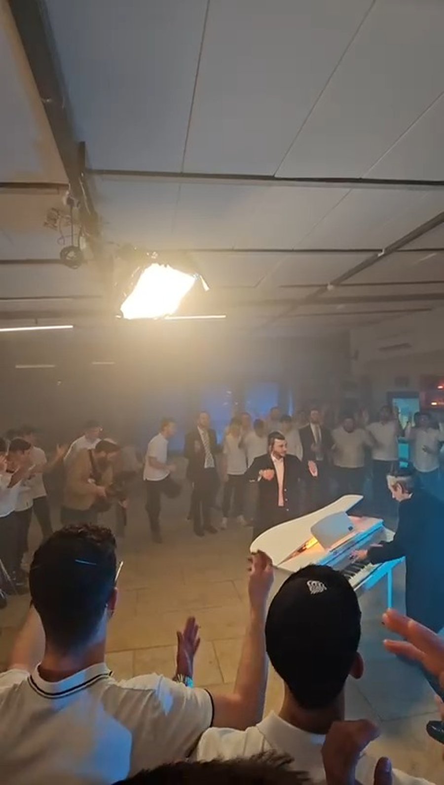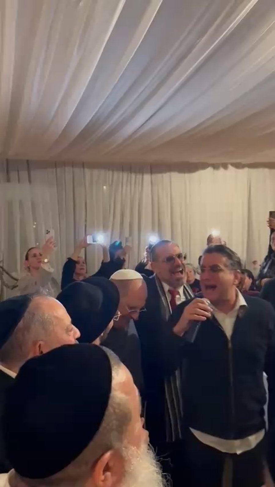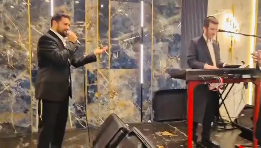 הזמרים אייזיק האניג ויודי ביאלוסטוצקי בשירה מרגשת בחתונת בתו של הנגיד נחום רוקח בלייקווד שבניו יורק.