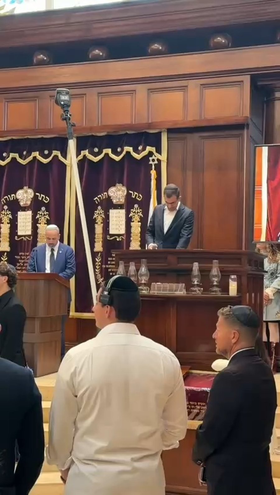 הזמר עמרם אדר שר "אבינו שבשמיים" במהלך ביקורו של ראש הממשלה בנימין נתניהו, בבית כנסת מקומי במיאמי, במסגרת ביקור עבודה בארצות הברית.