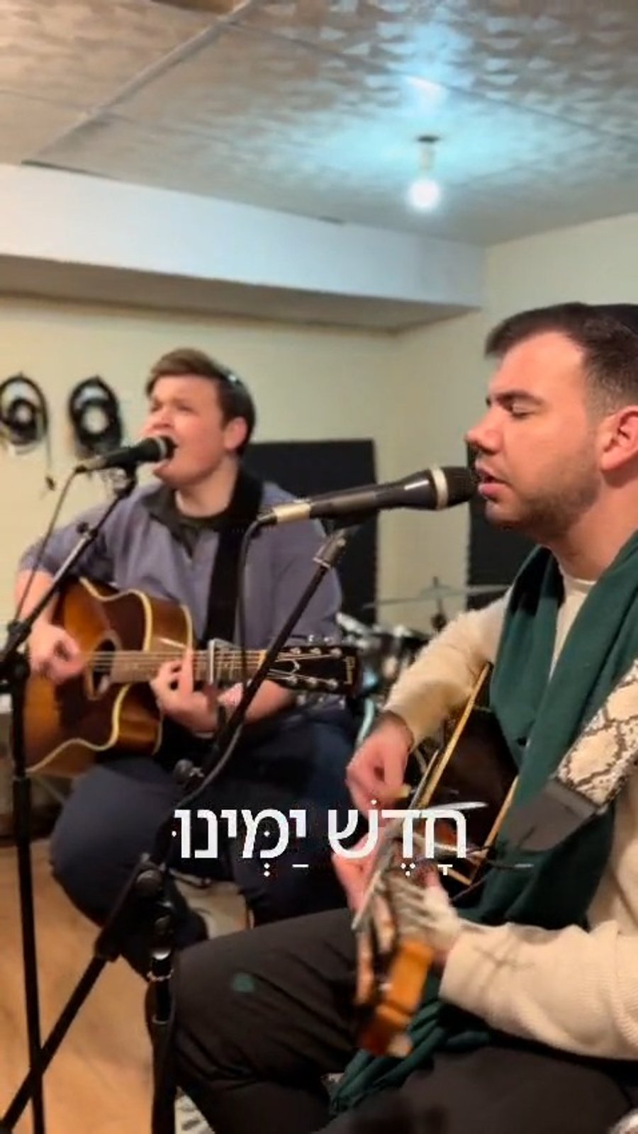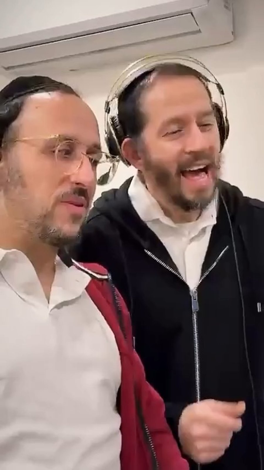הזמרים ליפא שמלצר ושלומי גרטנר, בהקלטות לשיר חדש.