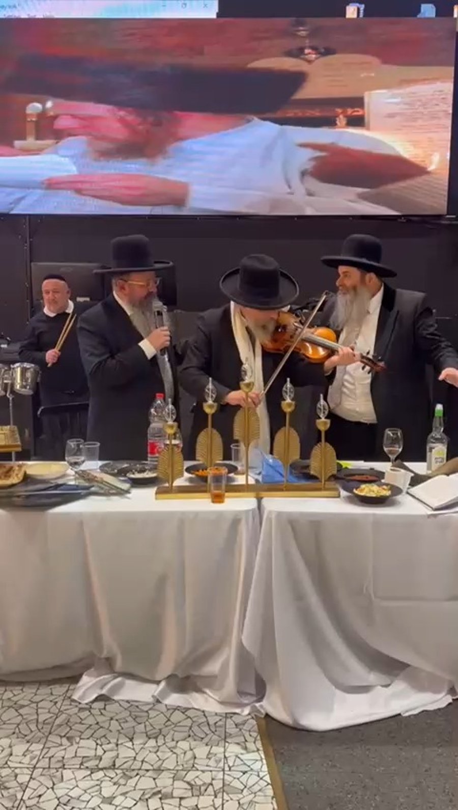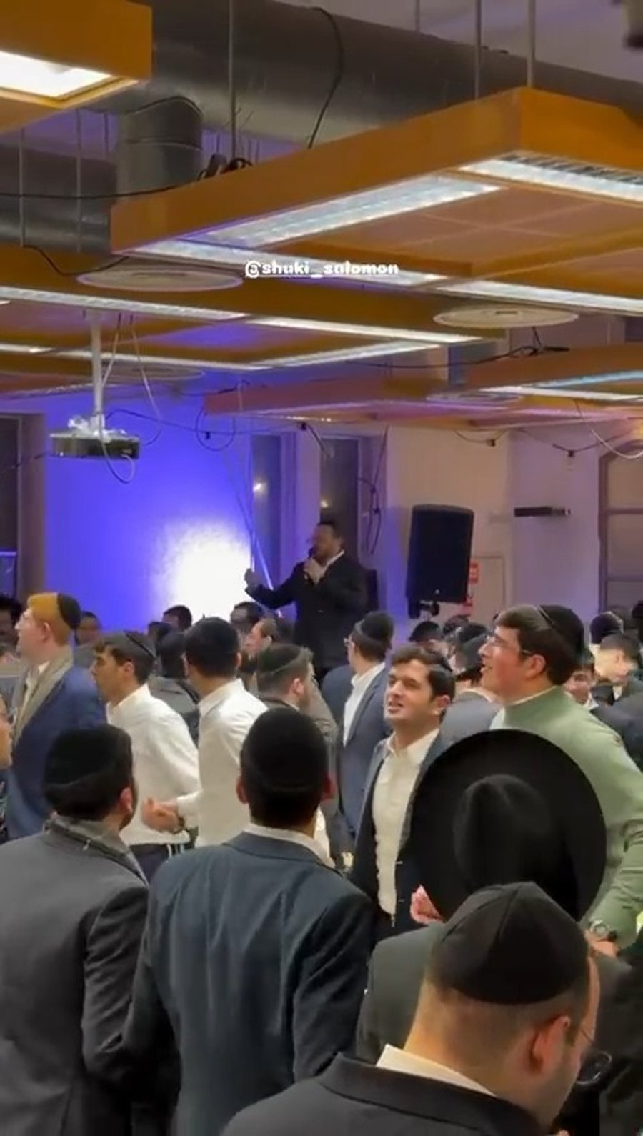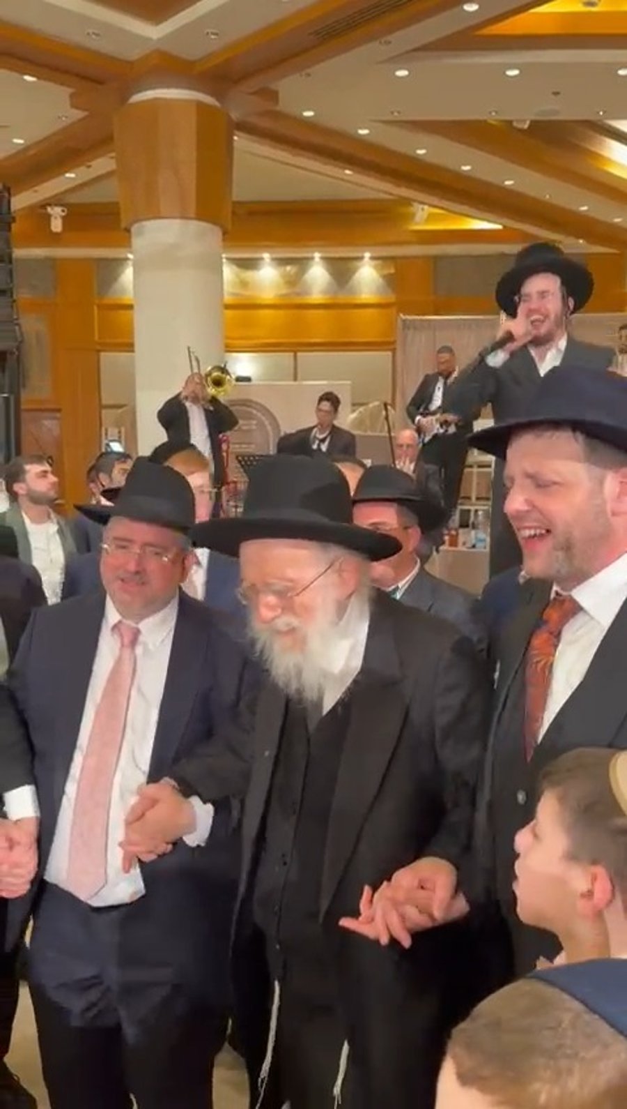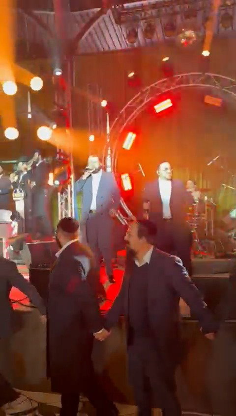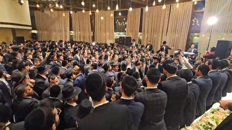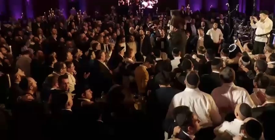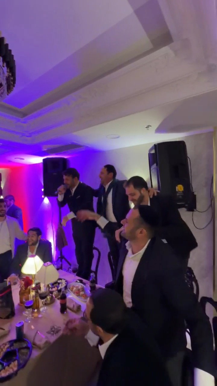 בשמחת החתונה באולם ראינו את הזמר בנצי שטיין וחברי מקהלת 'נשמה', מקפיצים בשירת: "טאטאל'ע קום שוין אהיים", בתיעוד נראה המשפיע הגאון הרב שמעון גלאי בריקוד עם החתן וההורים.