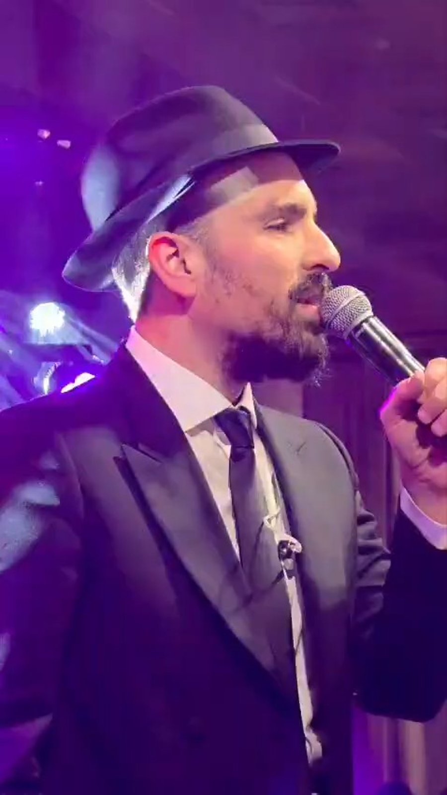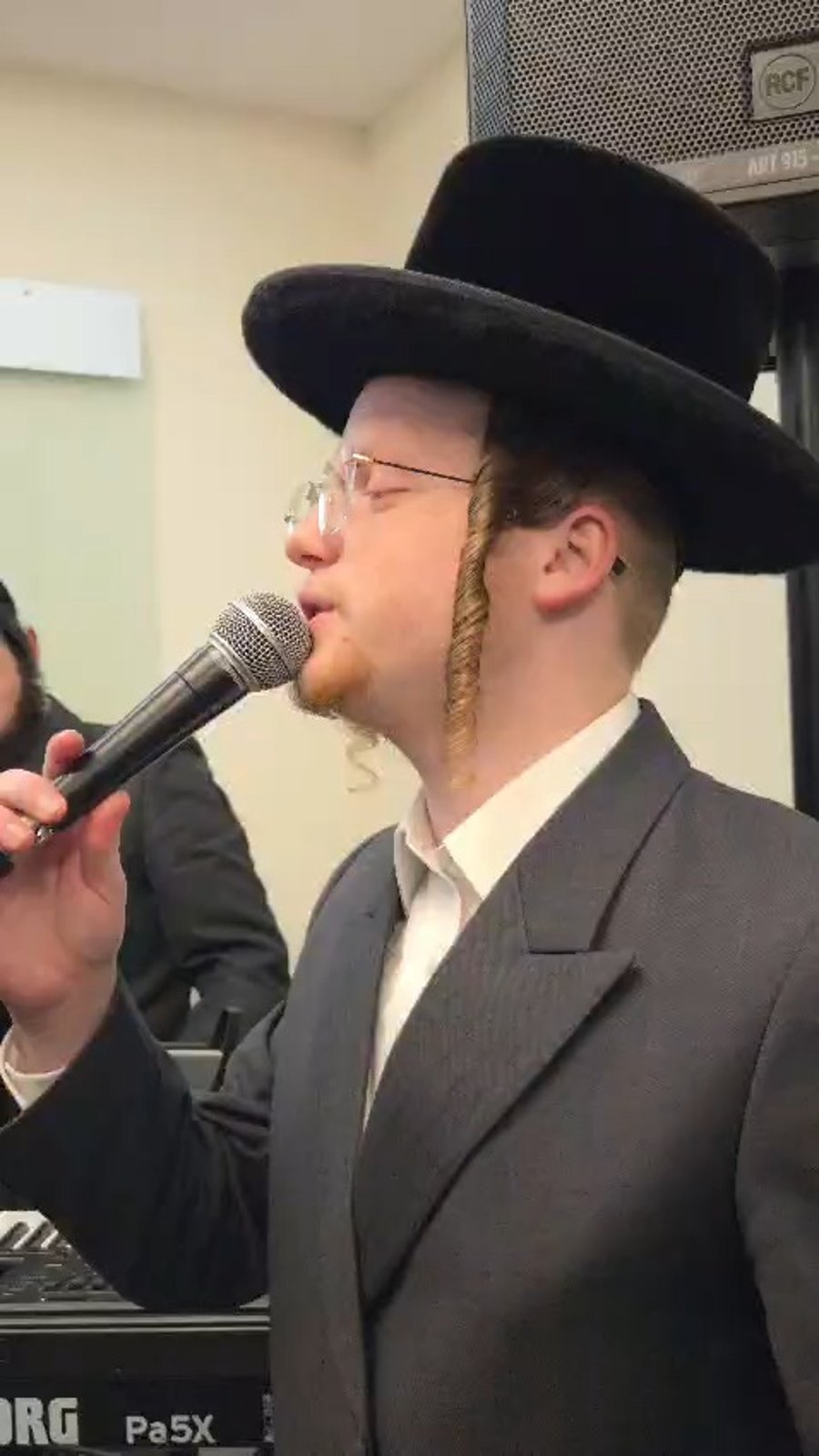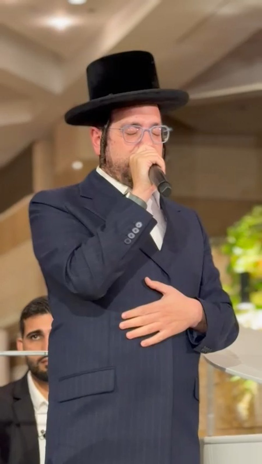 הפייטן איציק שריקי בשירה ופיוט בהילולת 'הבבא סאלי' שערך נכדו האדמו"ר הרב שלמה בוסו, במלון 'מצודת דוד' בירושלים.