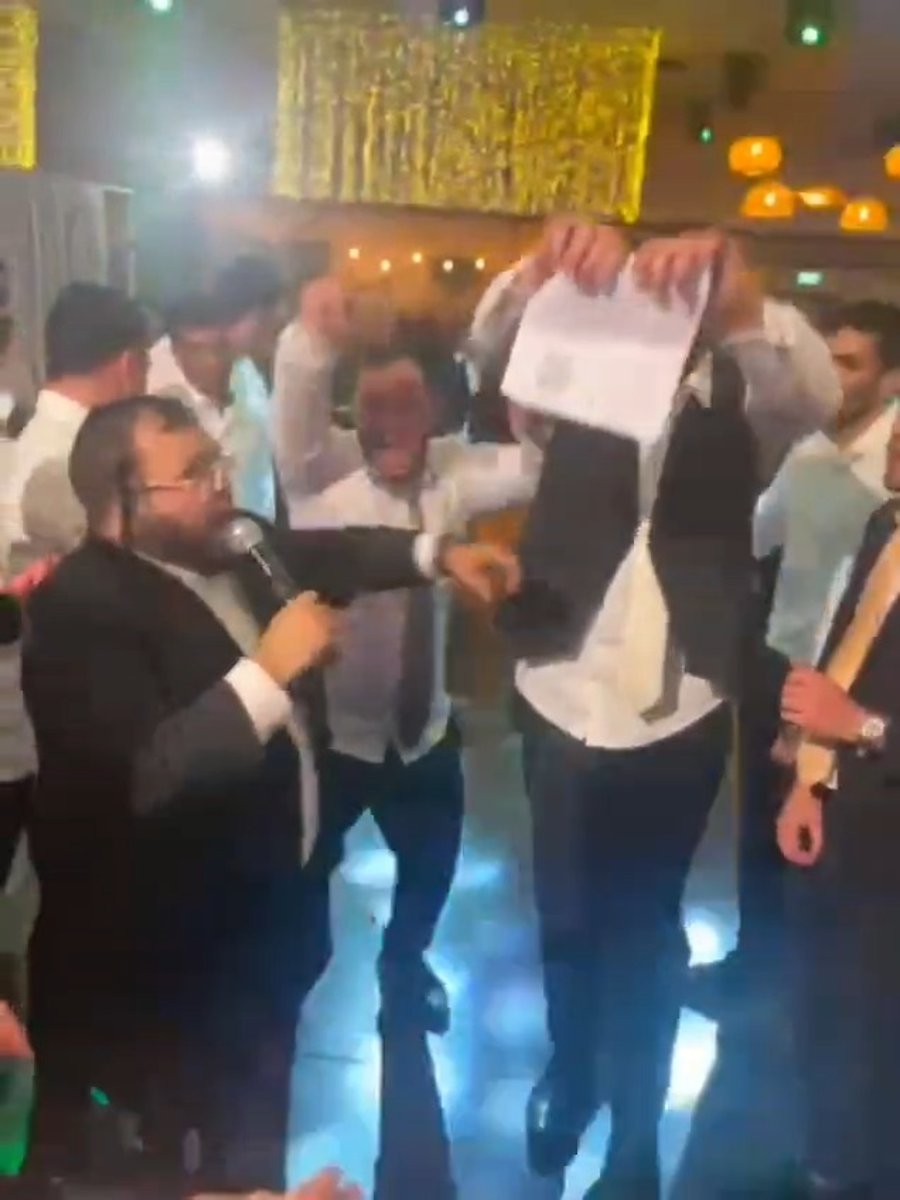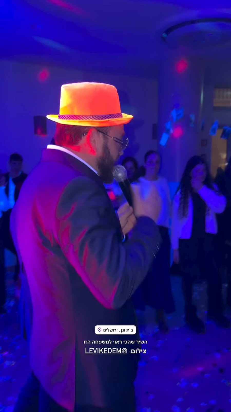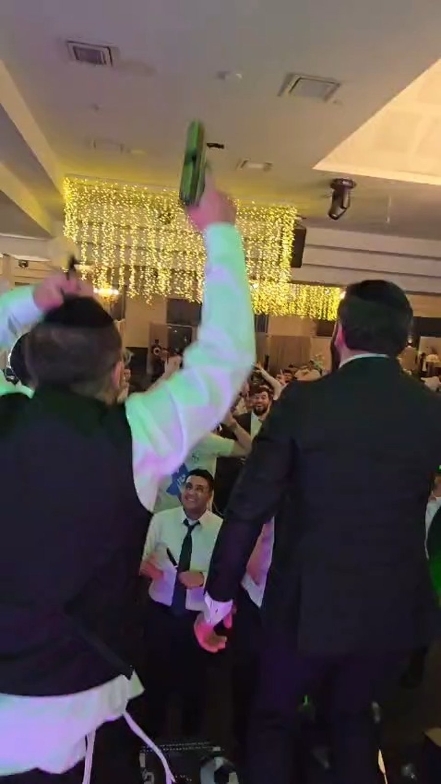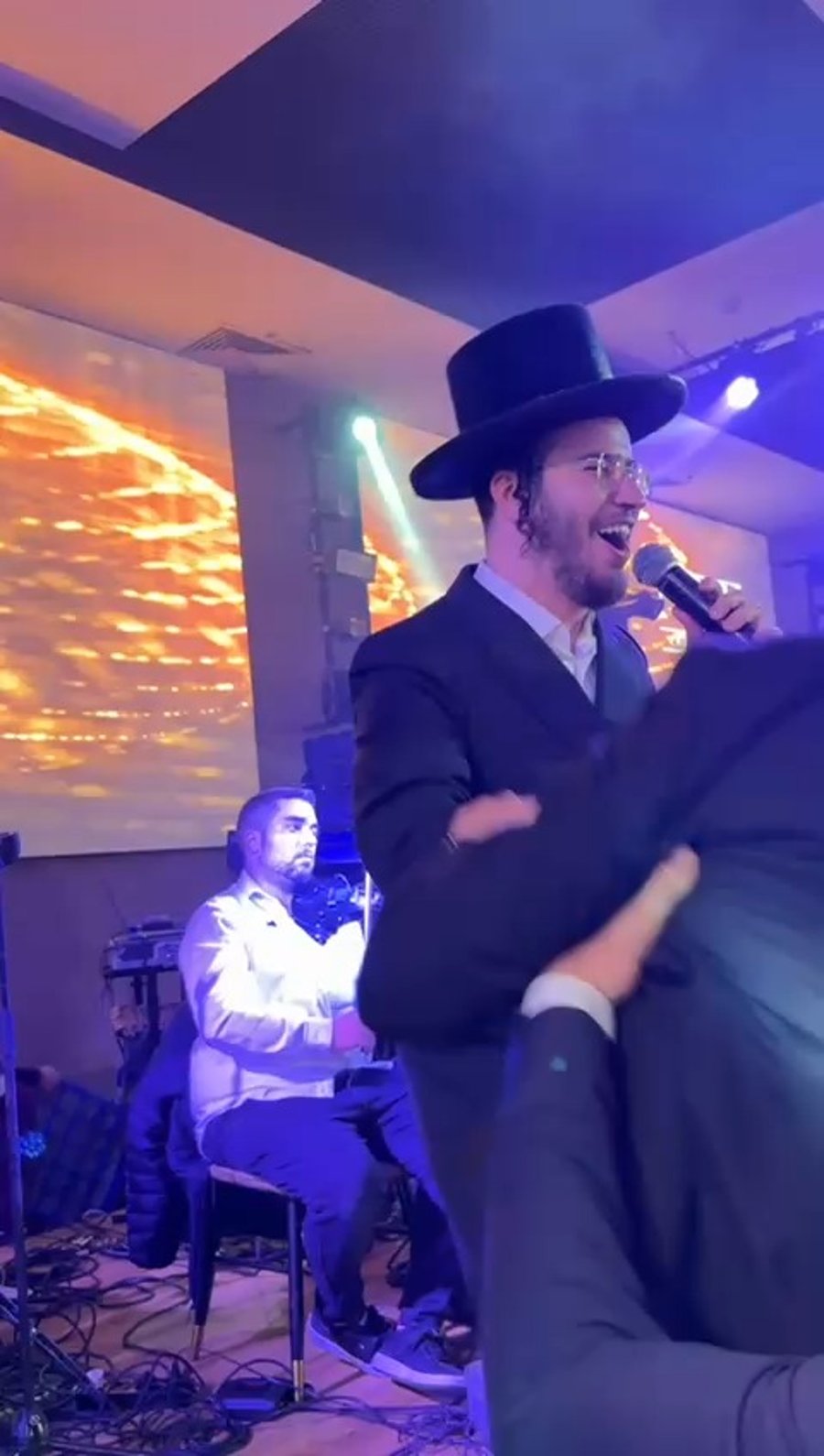 הזמרים משה דוויק ובנצי שטיין מקפיצים בשירת: "לכבוד התנא האלקי רבי שמעון בר יוחאי", בחתונה של העסקן אילוש שראבני.