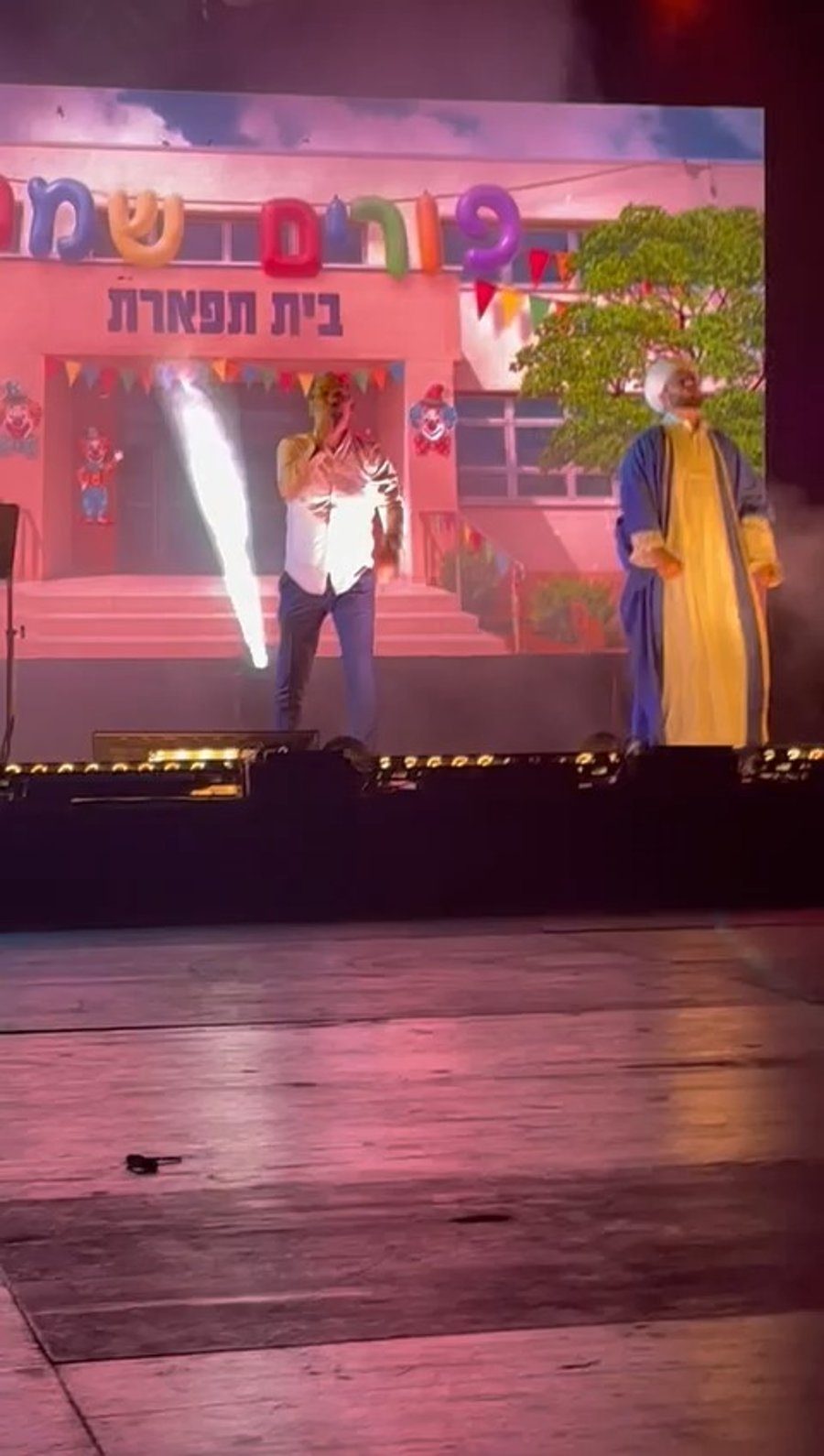 כוכב הרשת והזמר שוקי סלומון שמגלם דמות של 'מרדכי היהודי', במחזמר פורים של ארגון 'תפארת' המתקיים בימים אלו ברחבי הארץ - בביצוע מיוחד לשירו: "שיר השמחה", יחד עם שותפו לשיר הזמר ישי לפידות, במחזמר בעיר נהריה, חדי עין (או סתם אנשים שהרכיבו את המשקפיים) יבחינו שלפידות מחזיק את נכדו הקטן על ידיו.