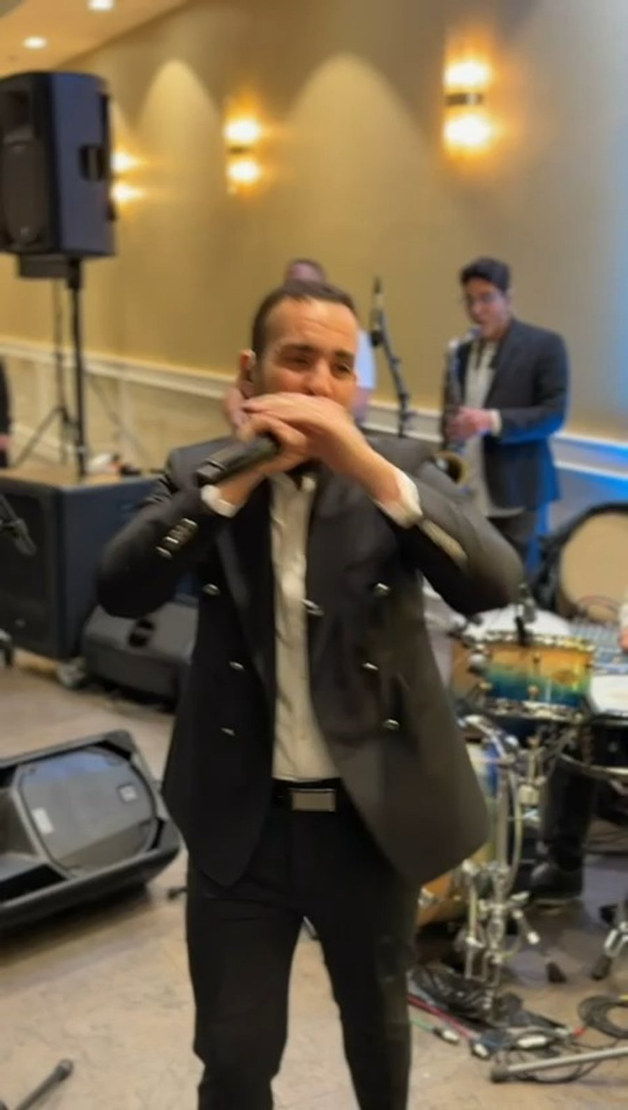 הזמר שמעון לוי בשירי פורים בבר מצווה לבנו של המפיק משה ממן, יחד עם תזמורתו של רועי פנחסי.