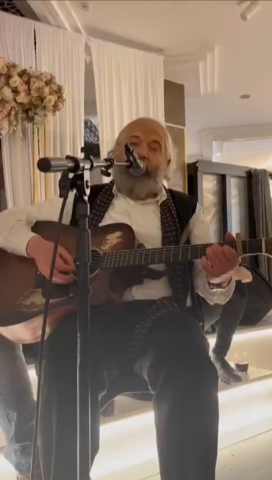 הזמר מוטי איידנסון שנפצע בגבו, הופיע בחתונה כשהוא יושב על כסא גבוה ומתנייד באמצעות קביים.