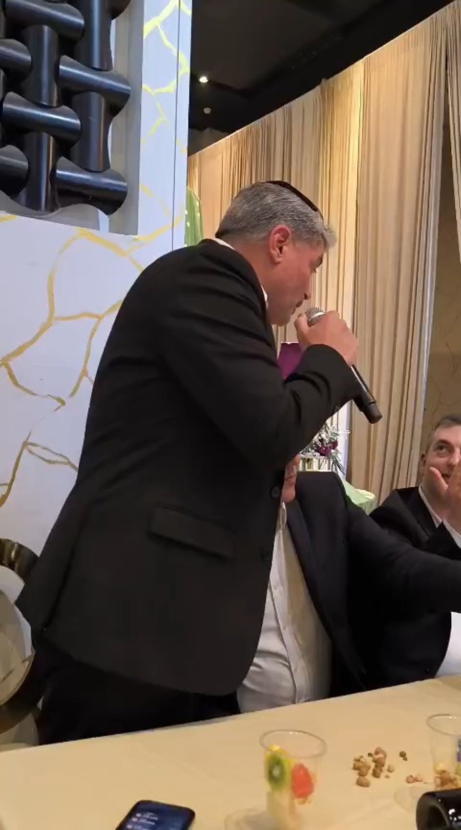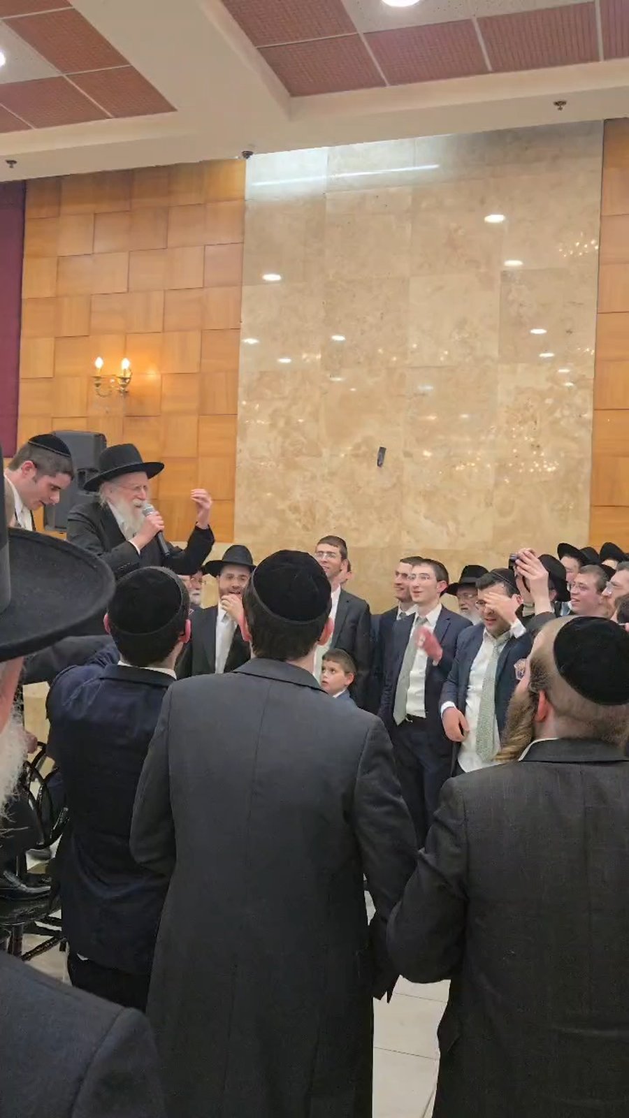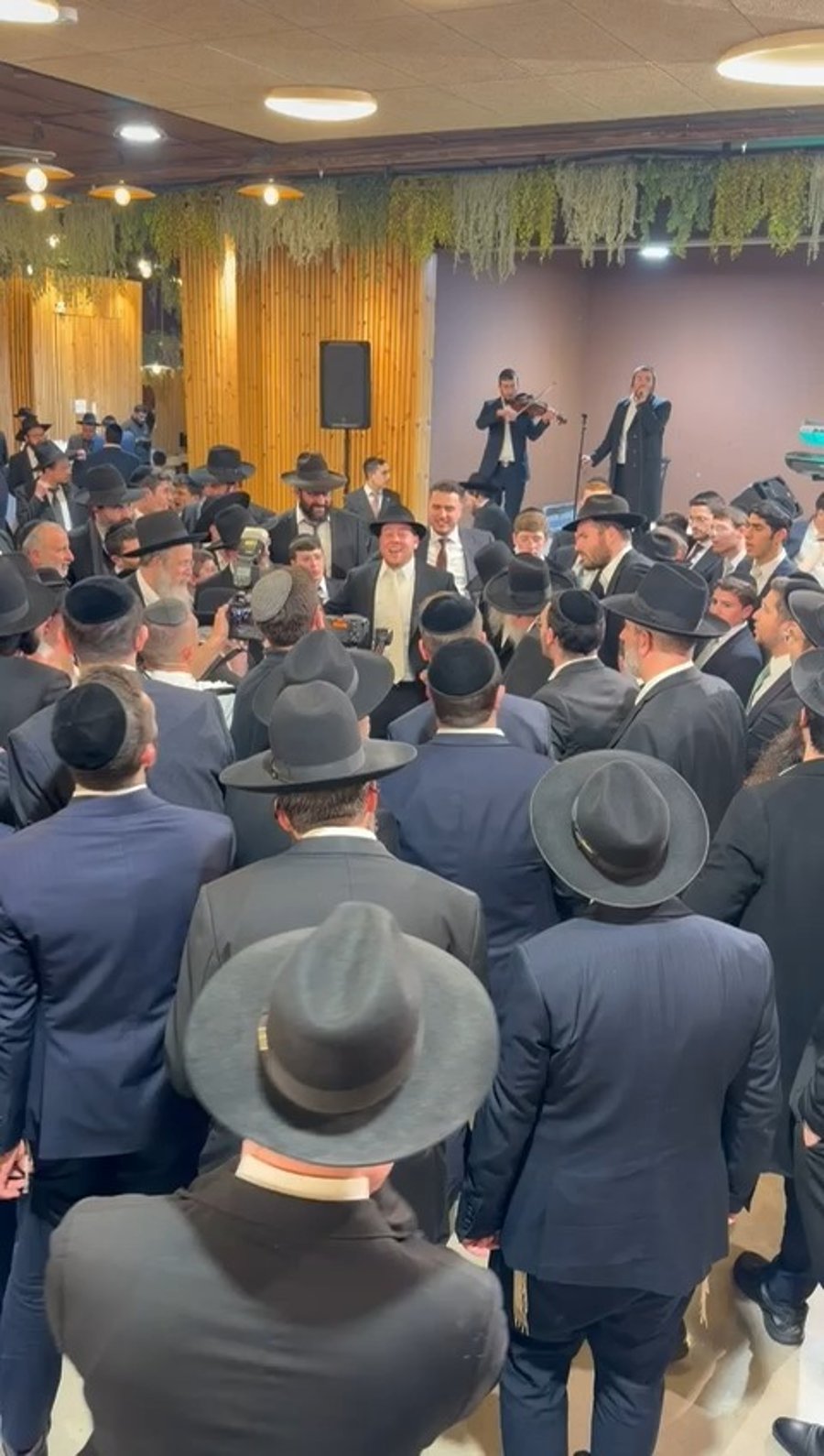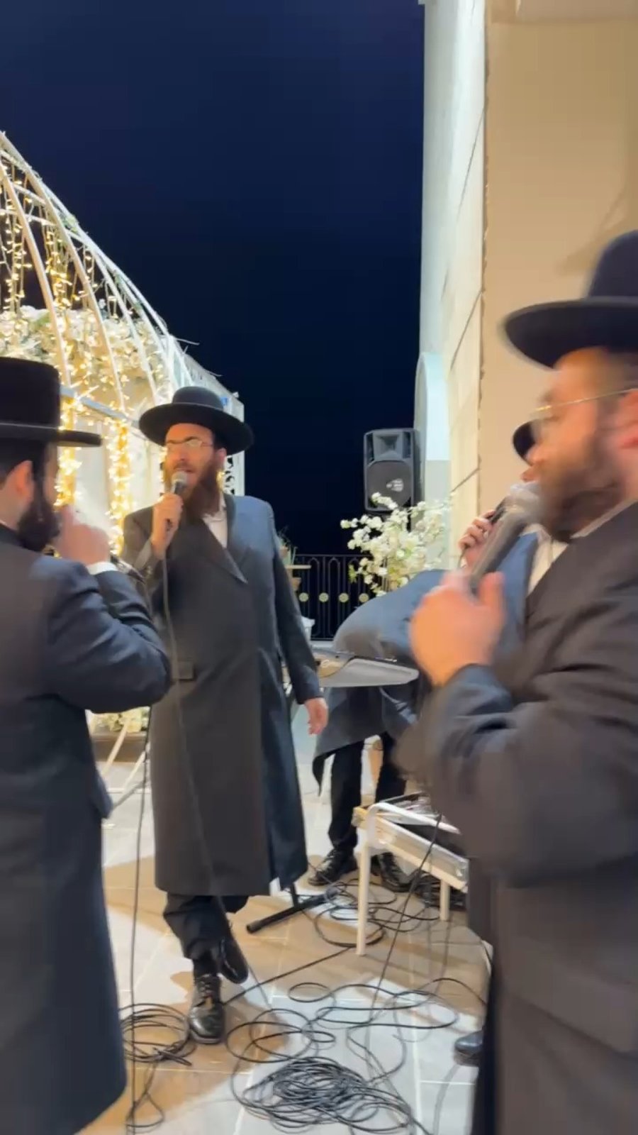 הזמר מוישי וולס מקפיץ בשירת: "טאטאלע קום שוין אהיים", בחתונת מלחמה מצומצמת בהשתתפות הגאון דוד יצחק שפירא ראש ישיבת 'באר יעקב'.