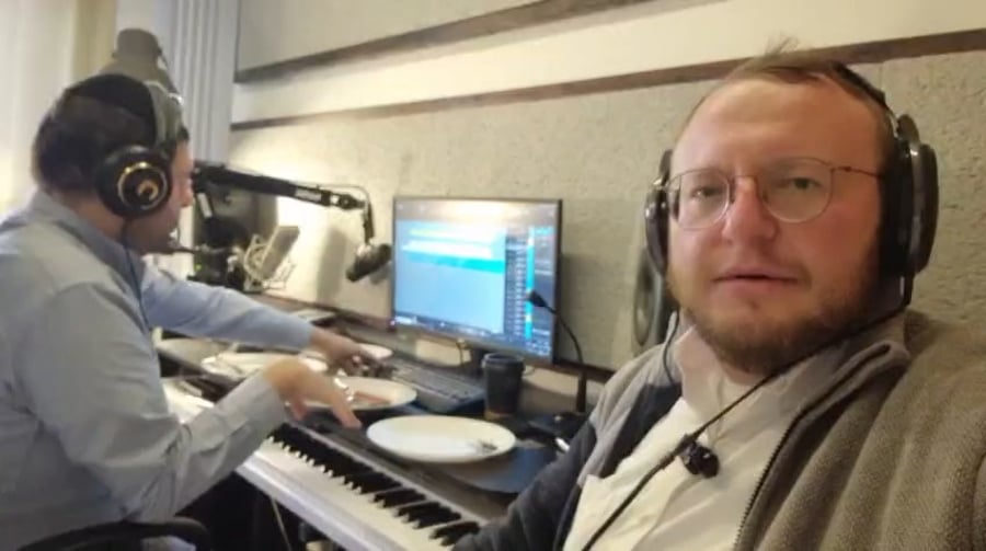 הזמר יצחק בן ארזה בהקלטות לשיר שבת חדש בהפקת המוזיקאים אלי קליין ואיצי ברי.