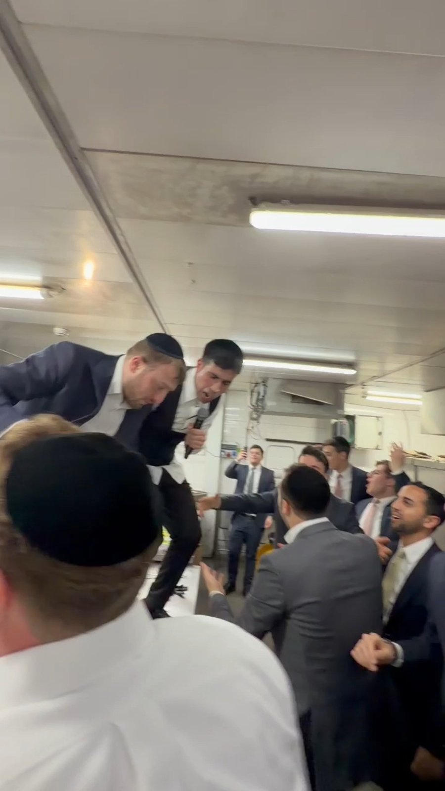 הזמר שמוליק קליין חוגג יום הולדת 27 למוזיקאי יוחנן אורי, במהלך חתונת מלחמה באולמי 'בריליאנט' במודיעין עילית.