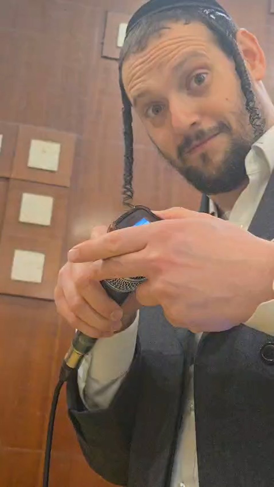 הזמר הרשי אייזנבך שהופיע בחתונת מלחמה מצומצמת, מודיע על אזעקת צבע אדום באמצעות הטלפון הכשר שלו.