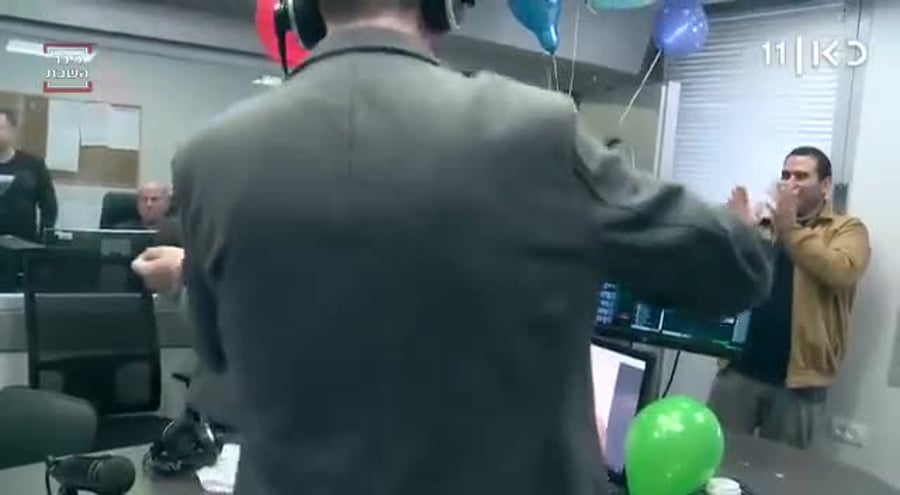 • אחרי ש'כיכר השבת' היה הראשון לספר לכם על אירוסיו של התמים מנדי גרוזמן. עכשיו 'זופניק' מתכבד להביא בפניכם טעימה מהחגיגות, ביום שאחרי. גרוזמן שעוד לא התאושש מההלם, הגיע למקום עבודתו ב'כאן' בנוהל. עם סיום השידור הפתיעו אותו החברים לעבודה בפרחים ובלונים בליווי הריקוד המסורתי שהונהג על ידי החתן בשידורי העבר.