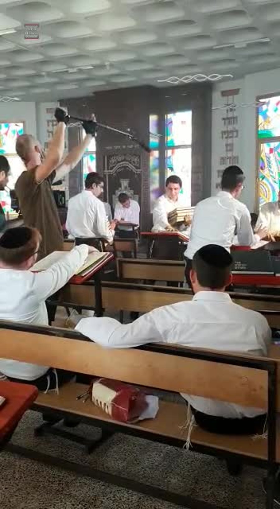 • והנה בחורי ישיבות שלא הסתדרו על "מלונית". עשרה בחורים מתוך עולם הישיבות נצפו השבוע בצילומים בביהכנ"ס בעיר פתח תקווה לסצנה עבור הסדרה "בת השוטר" שתשודר ב-yes.